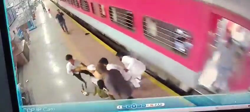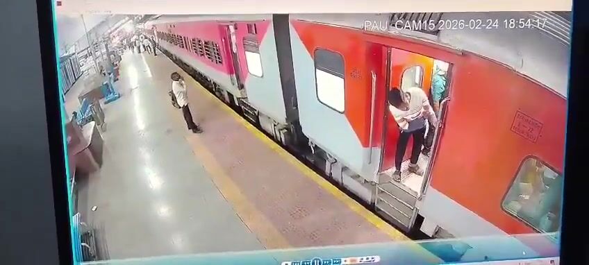Sometimes, you can't tell in what form God comes to help us. A woman constable of the Railway Department has become a god to a 75-year-old man. The 75-year-old passenger, who had got down from the train at the railway station as soon as it stopped, was buying something from a shop when the train started. She immediately ran away and got stuck in the gap between the train and the platform. Just then, RPF woman constable Rama Sharma came running and pulled the man onto the platform. Even though she was a little late, the man's leg could have been amputated or his life could have been lost. This scene of her punctuality was captured on the CCTV of the railway station and the Railway Department has shared it on its X page.