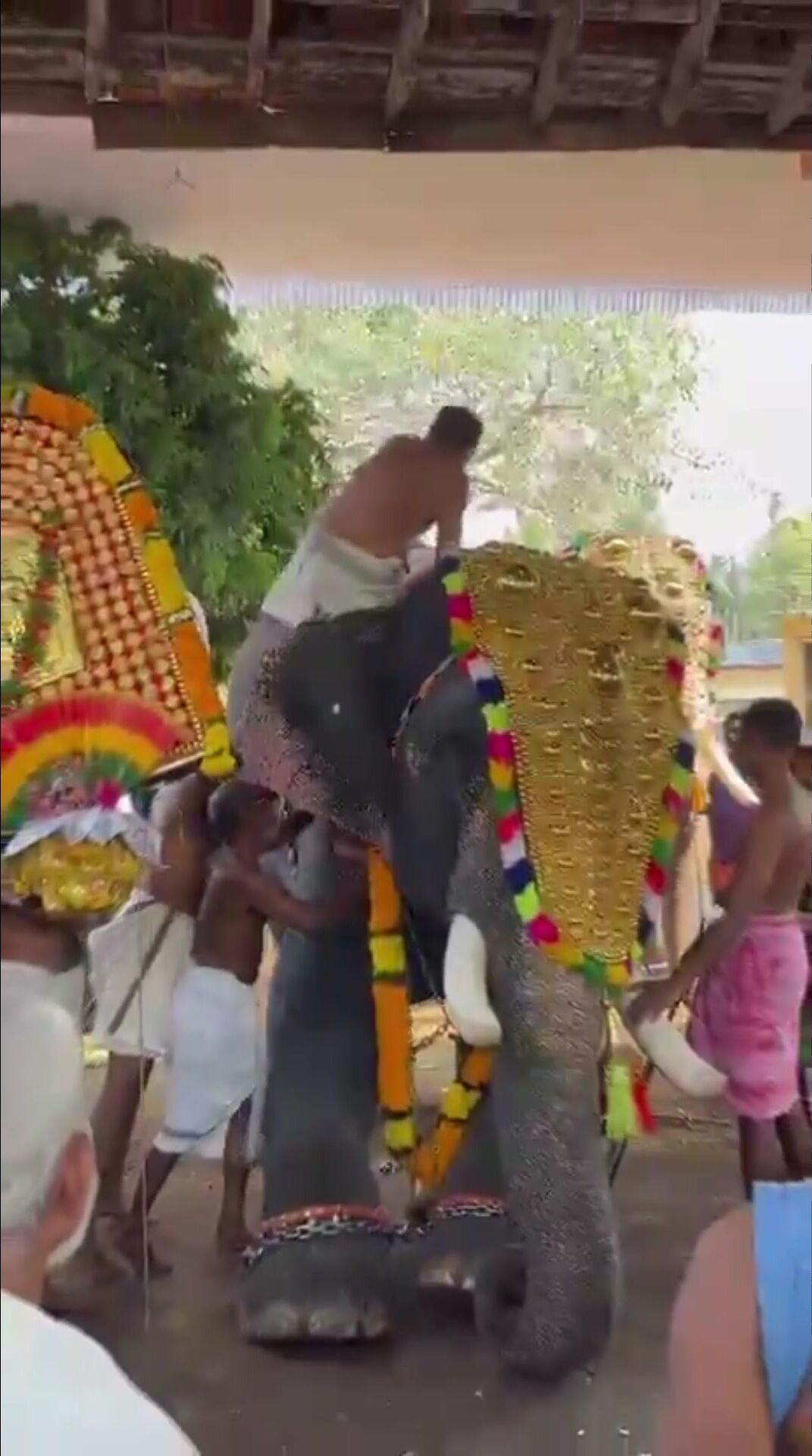 Elephant picks up, throws man during Valiyavilakku festival procession in Thrissur, Kerala