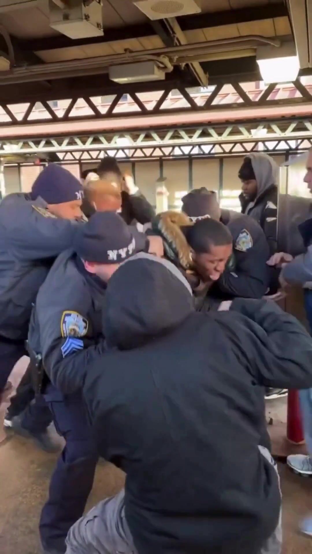 NYPD needs cattle prods. Multiple officers should not have their lives endangered because someone has decided to steal a train ticket. Just electrify the insolent beast, until it pays, or leaves the station.