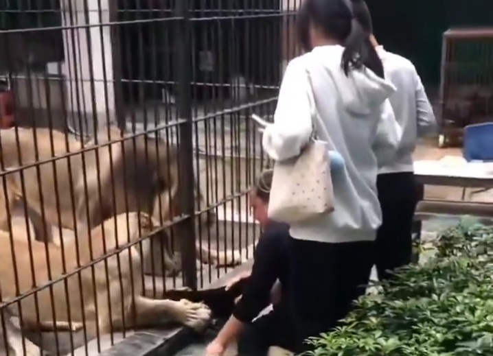 They stepped over the blue safety railing to get closer to the lions, now they experience the stupidness! ![]()