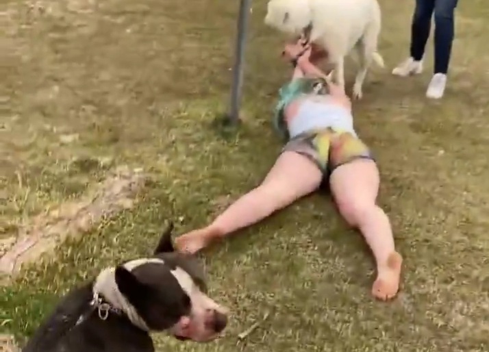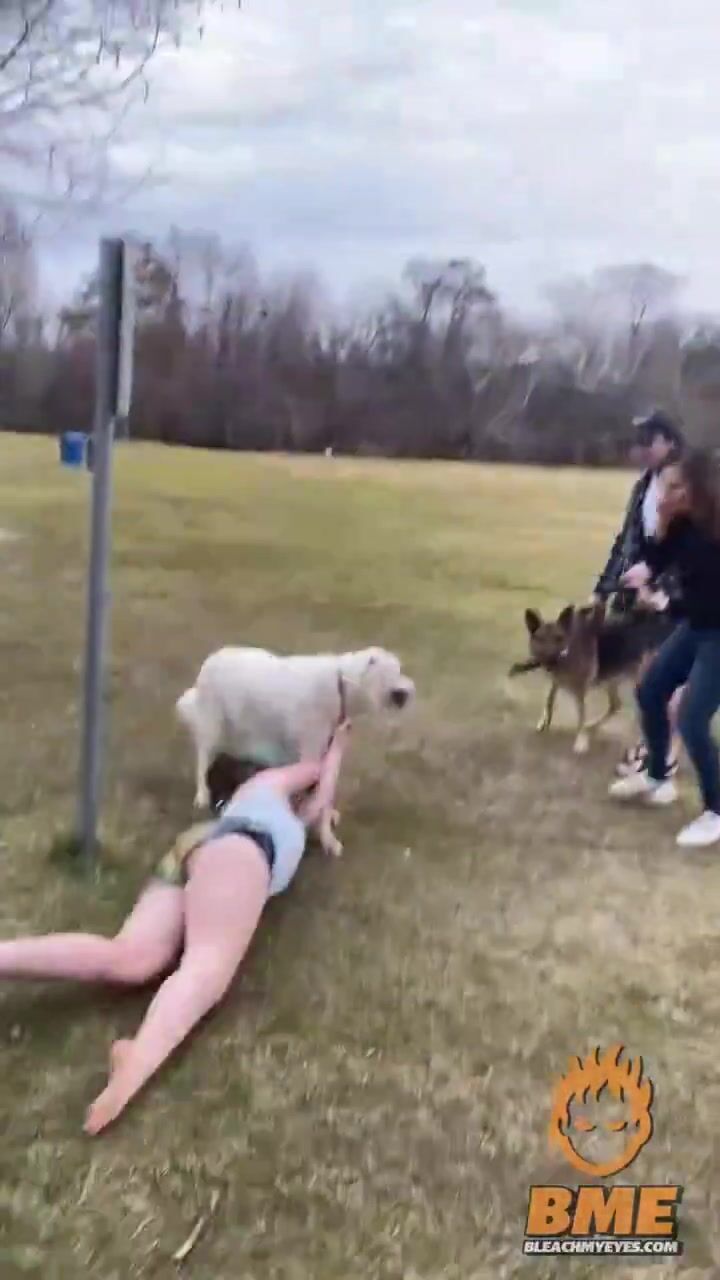 The piece of shit wanted it to happen, otherwise he would have broke it up instead pulling on the end of the leash while filming it.