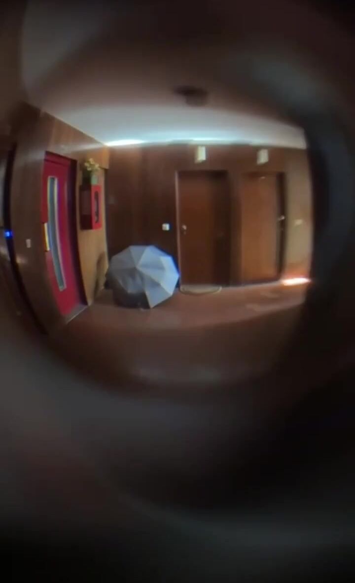 Let him open the door, then as soon as he takes one step into the apartment. Two shots center mass, one between the eyes. He'll never do it again.