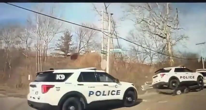 Dashcam footage shows the SUV pulling a flatbed trailer with a Cincinnati Police cruiser positioned on it. Authorities have not explained how the cruiser ended up there, though investigators say the suspect struck two police vehicles earlier in the pursuit.
