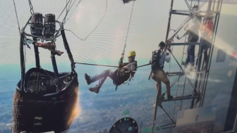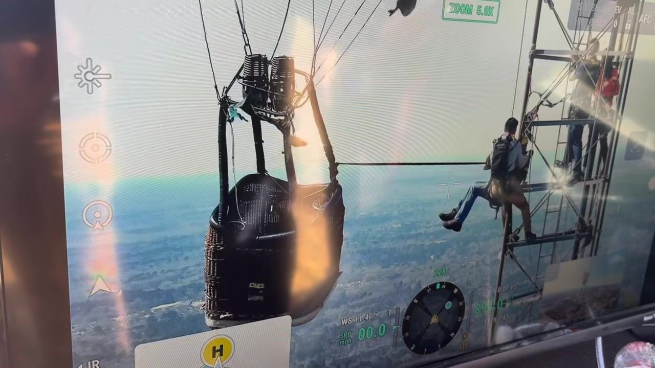 Two people were trapped 925 feet in the air after a hot air balloon collided with a communications tower in Gregg County, Texas