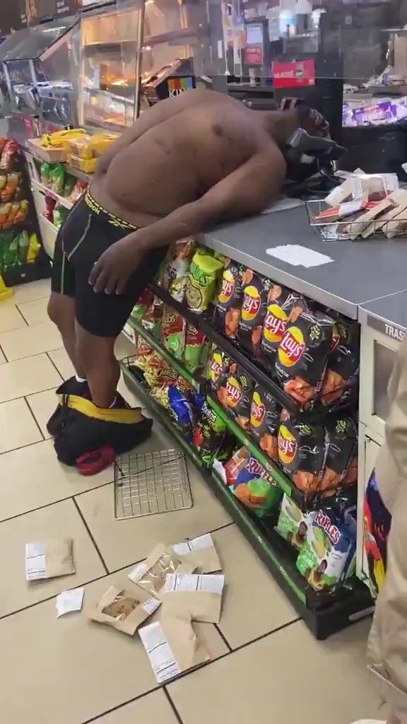 Man, you all racis, black man can’t pull his pants down and lay back on the counter and catch some Zs? Got me all fucked up