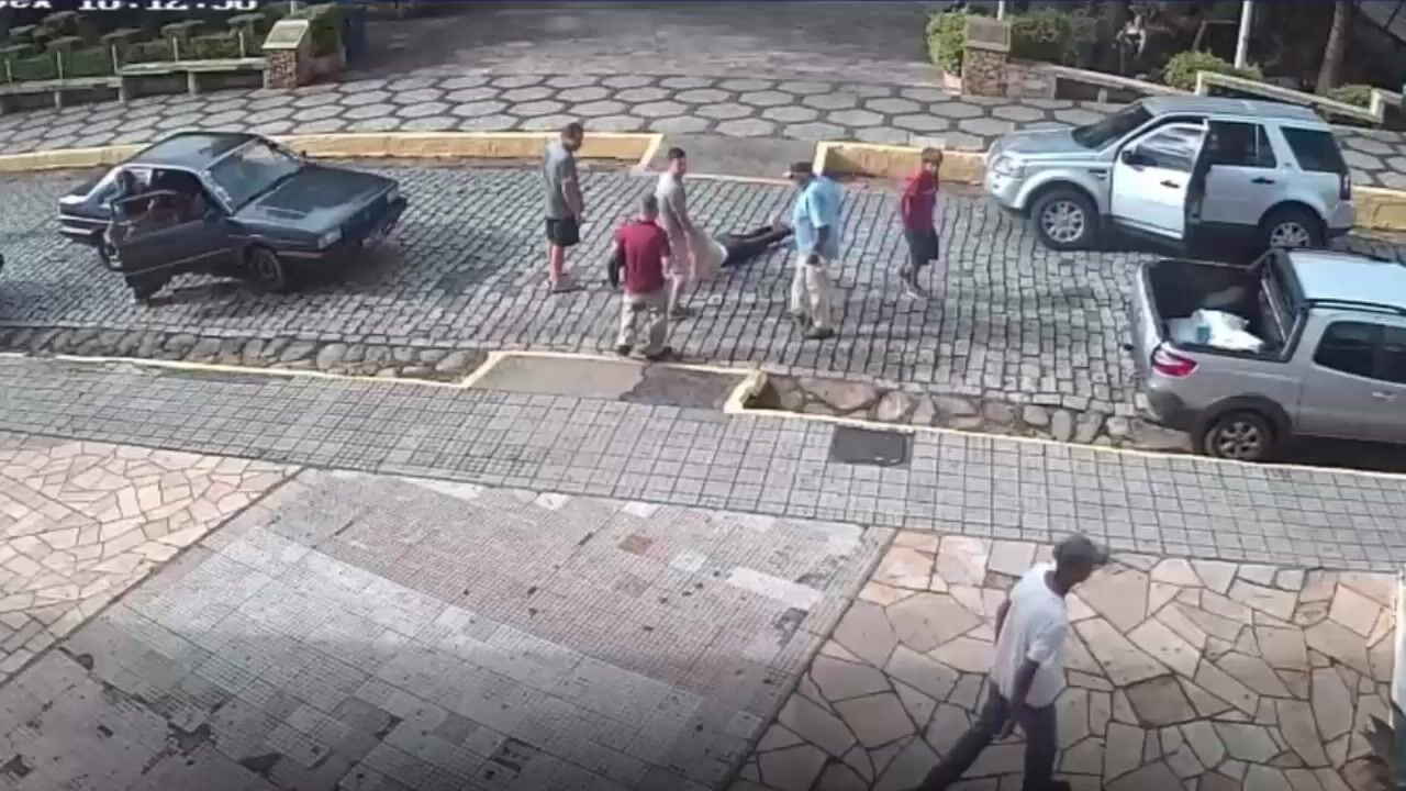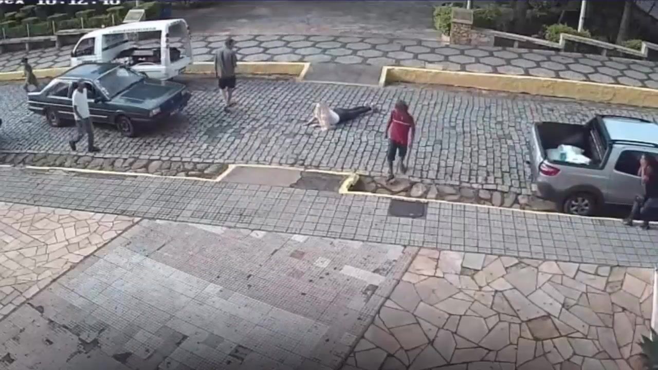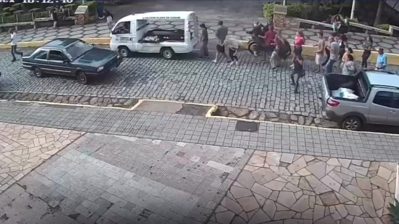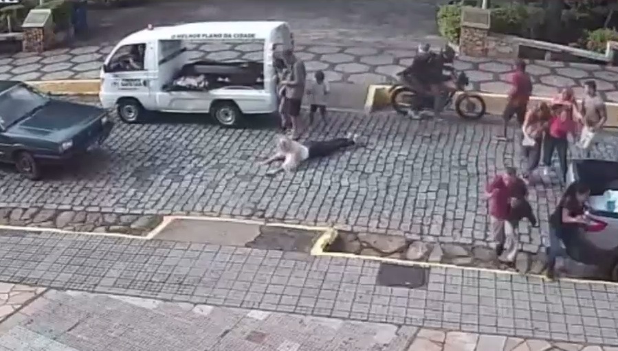 A video shows the moment when two men arrive on a motorcycle and one of them shoots a 27-year-old woman, who was at her own mother's wake , on a street in downtown Baependi (MG), on Friday afternoon (27). The woman was hit by three shots and is hospitalized. One person was arrested and other suspects are being sought by the police.