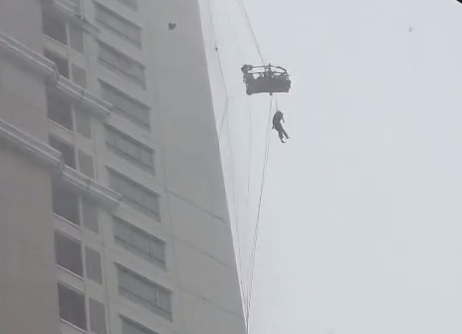 Sad Video shows Glass Cleaner stuck outside in a Storm