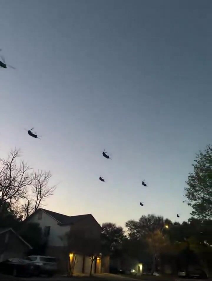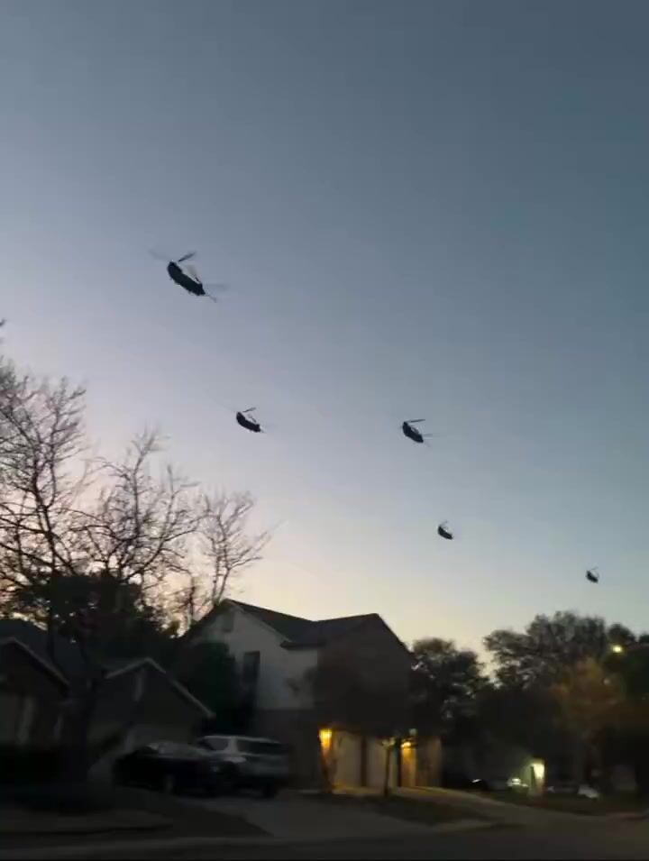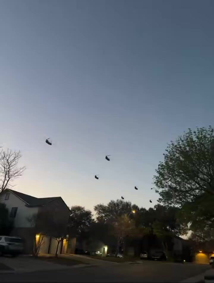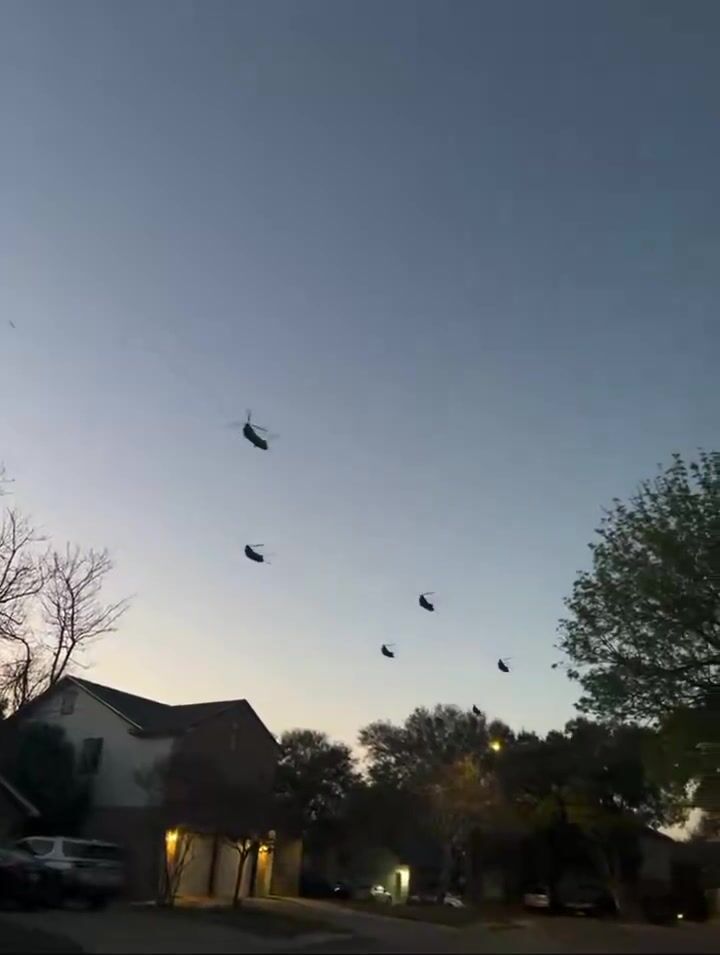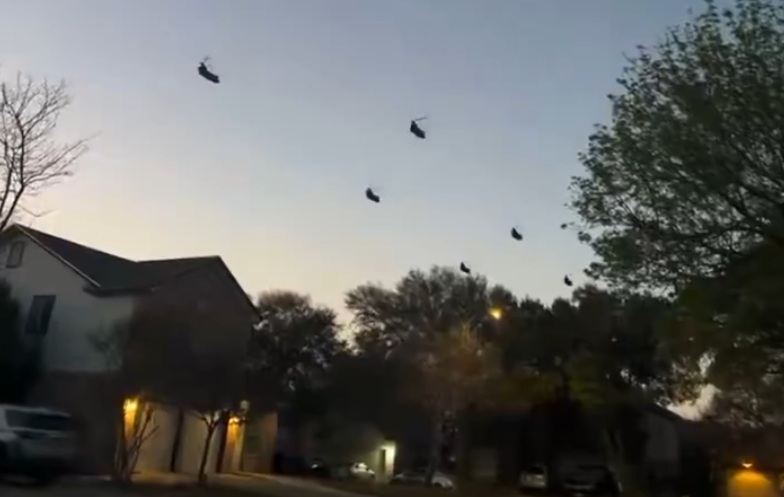 Residents captured videos Tuesday evening of at least half a dozen MH-47 Chinooks from the Army's 160th Special Operations Aviation Regiment conducting routine low-level night training near Joint Base San Antonio. Sightings stretched north toward Austin, including Leander, where groups of six to 10 helicopters passed overhead—a scale that stood out despite similar past activity in Military City USA. Separately, a Dallas-area bomb squad safely disposed of unstable picric acid from an antique item, with no connection to the flights or any threats, though rumors briefly swirled online.