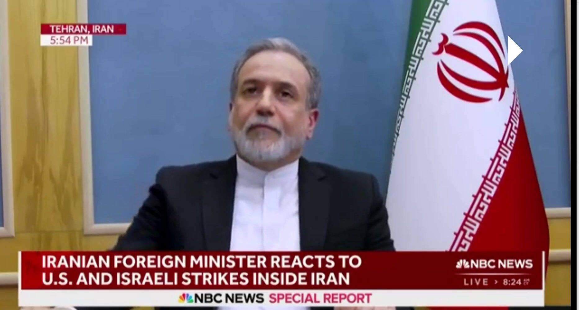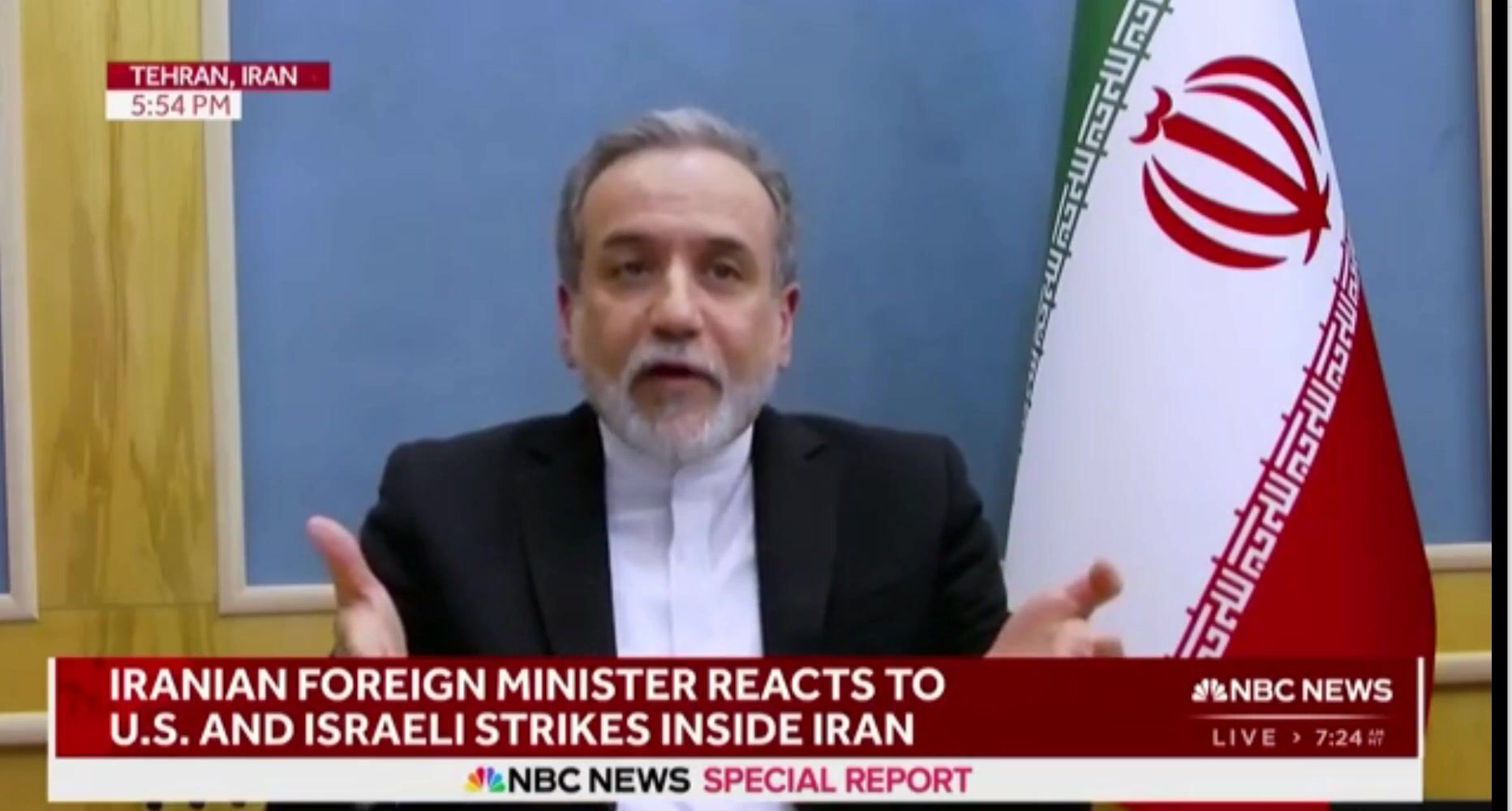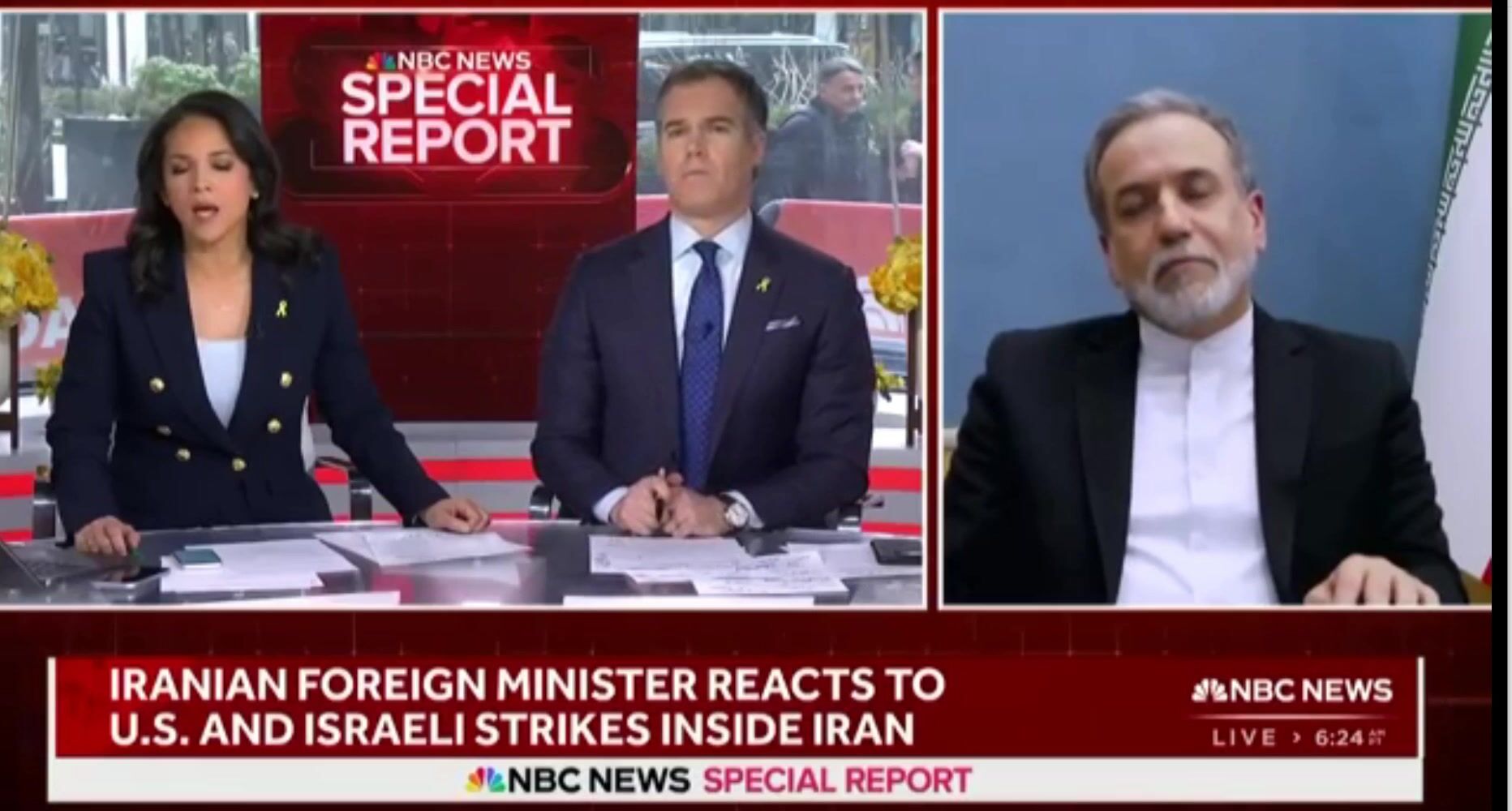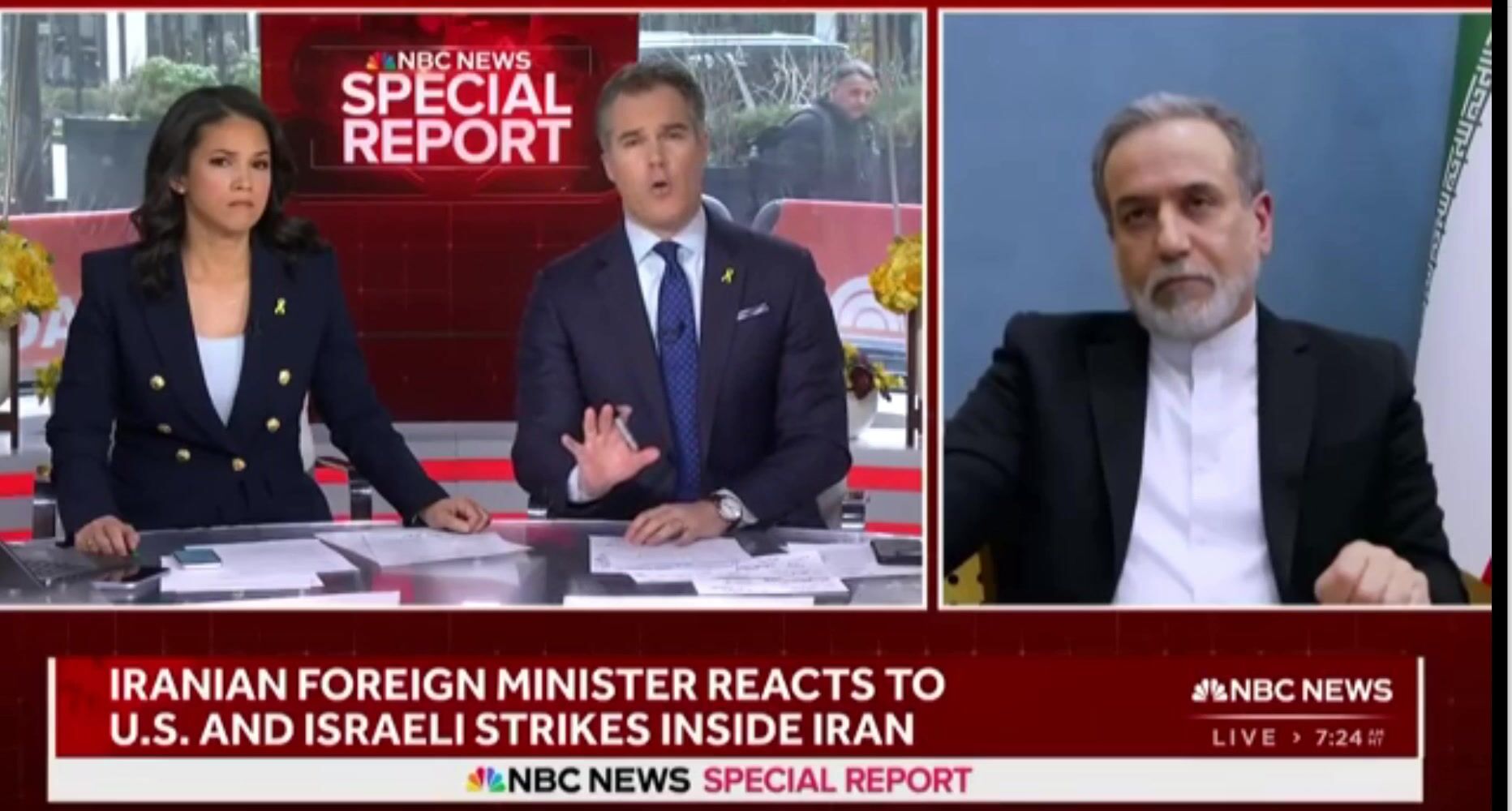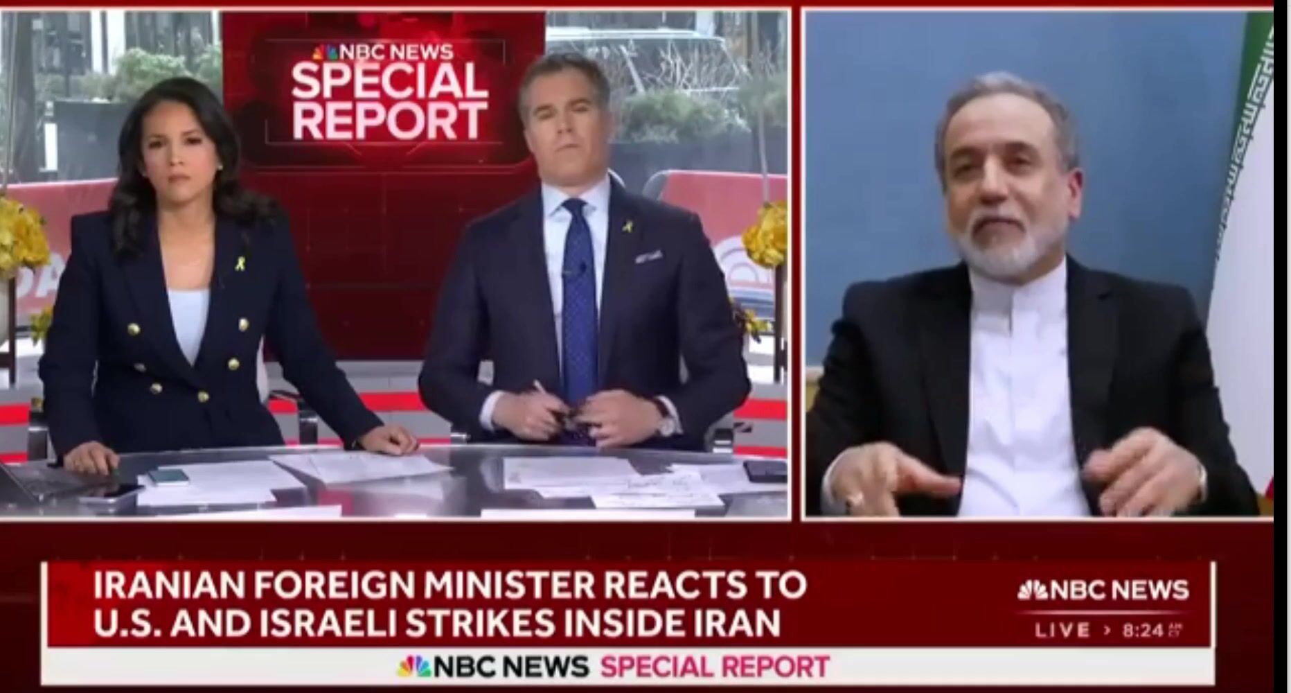 Interview with Iranian Foreign Minister Abbas Aragchi. First editor asked him if Iran was building missiles that could hit the US. He replied that he didn't. But the second editor then asked him, as if she had fallen from Mars, why is Iran attacking American military bases in the region?