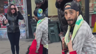 The gypsy chick in black was with the faker in red. They got their bluff called my a real working man who stands on business.
