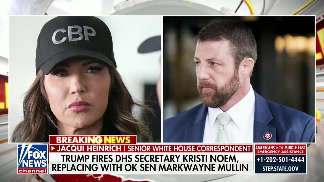 Sen. Markwayne Mullin will assume the DHS Secretary position at the end of this month, March 31, President Trump confirms Kristi Noem is being moved over to a new "Shield of the Americas" plan to GUARD the Western Hemisphere