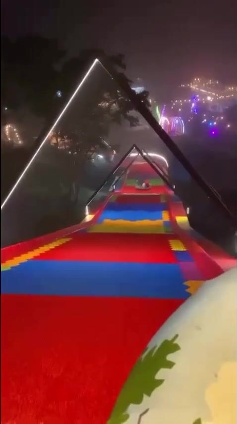 If you check the online photos you'll see that the only thing that was extreme about this slide was that turn. The rest was a straight line all the way to the ground. Of all the poor fucks who tried this shit, she was the unlucky one. It had to be her and her blubber. May all of her be accepted into God's mighty kingdom.