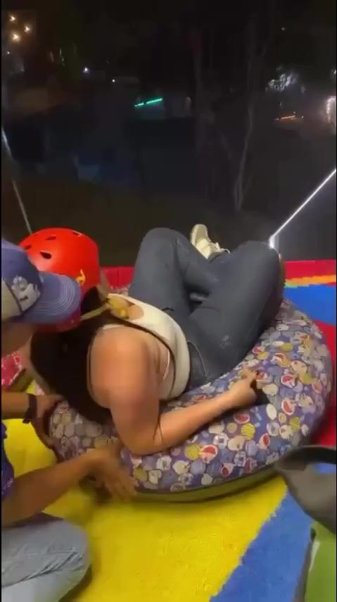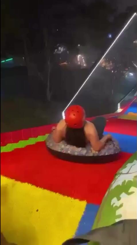 A slide where you need a helmet? Like how theyre laughing cause they know its dangerous af
