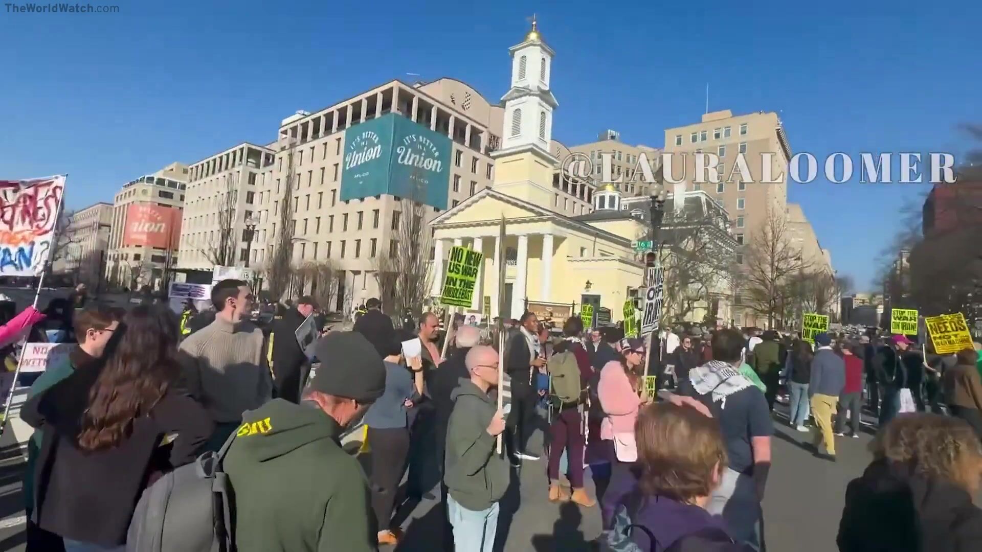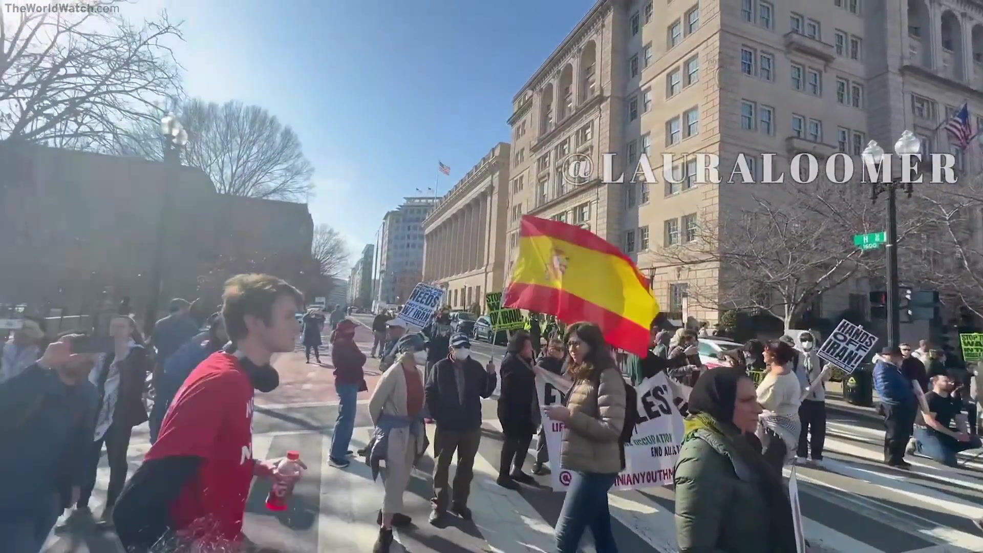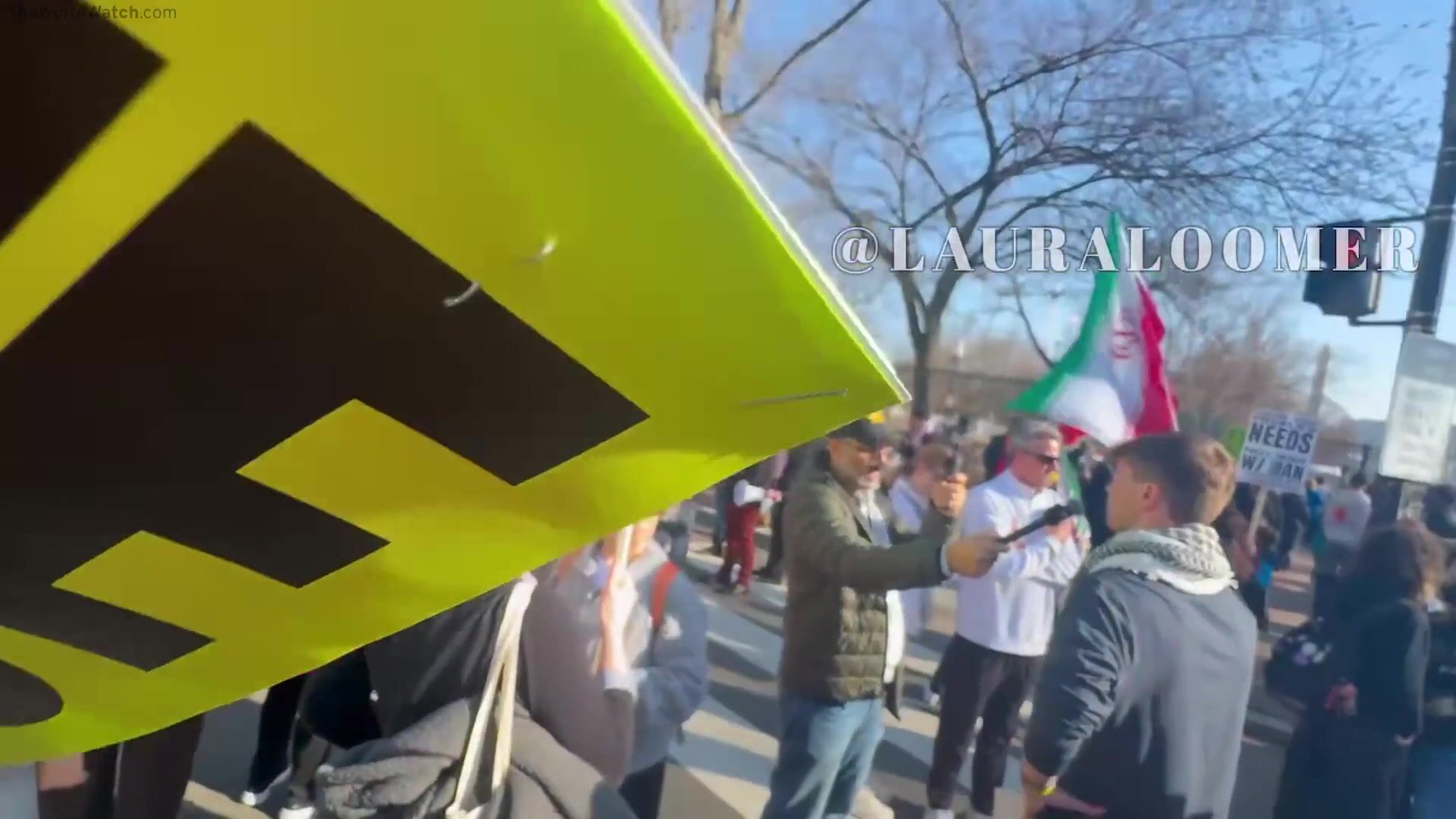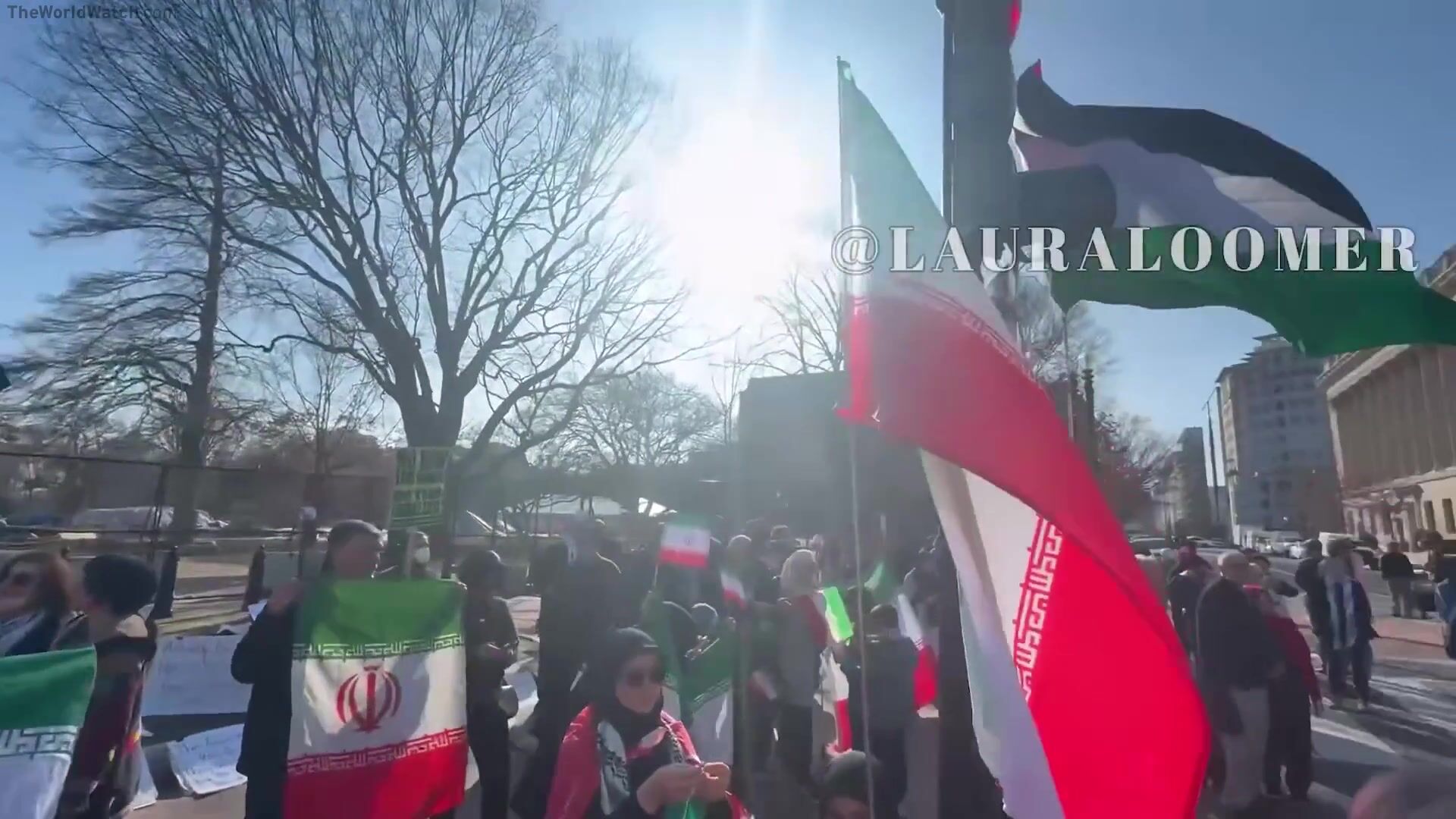 Pro-Ayatollah protesters waving the flag of the Islamic Republic of Iran are gathered outside the White House chanting “Allahu Akbar” over loud speakers.