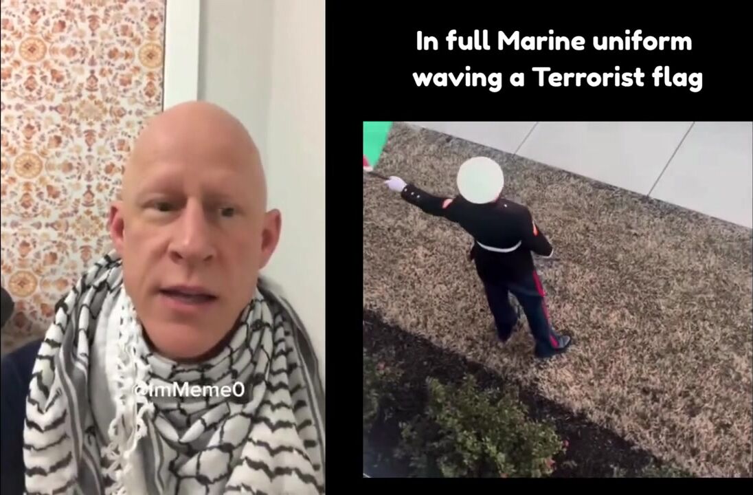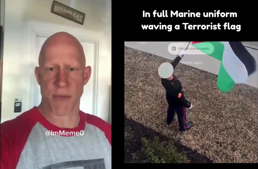 Send this punk to Gaza. I don't buy that he's a Marine. Anyone can purchase a uniform. The Jews want to kill all the Palestinians and all the Palestinians want to kill all the Jews. That's been going on since the time of Abraham. It won't be settled until Jesus Christ returns.