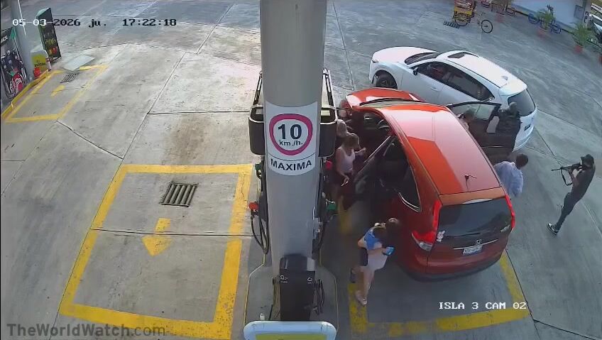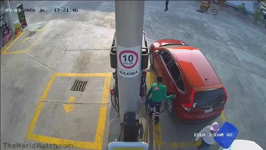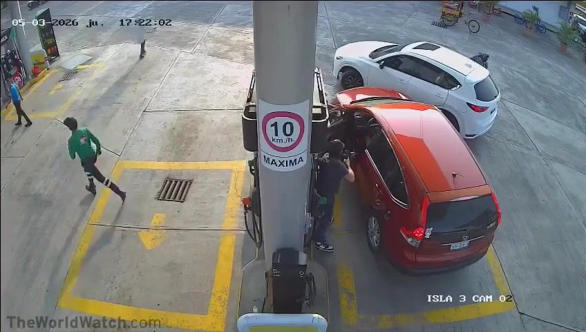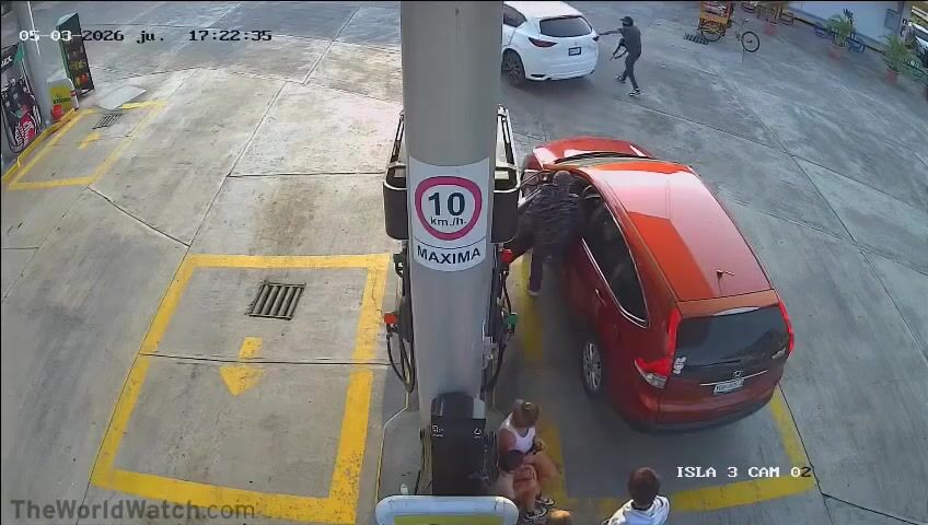 Crime in Mexico? No way. Mexico In 30 seconds, armed men steal a truck from a family with children at a gas station in Veracruz