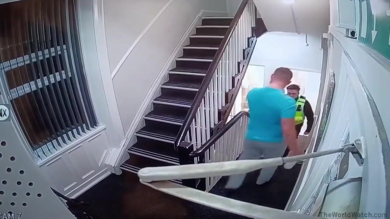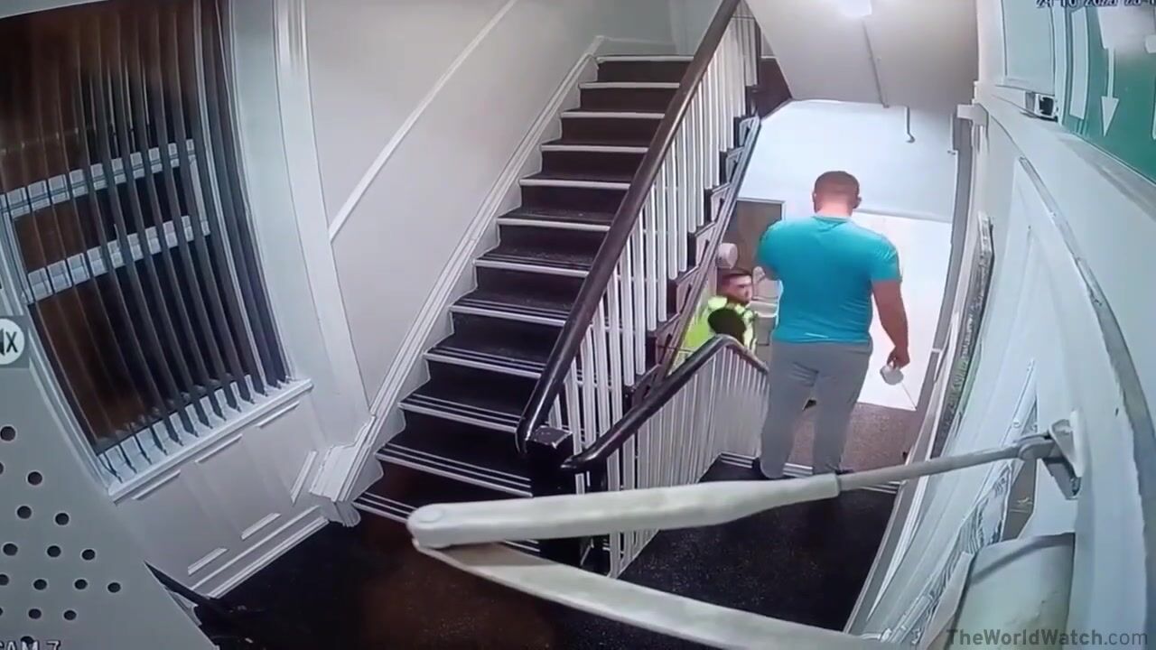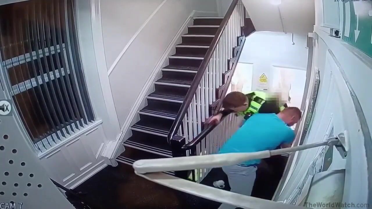 Tough guy thug brutally rugby tackles police officer down stairs – 'had a bad day'