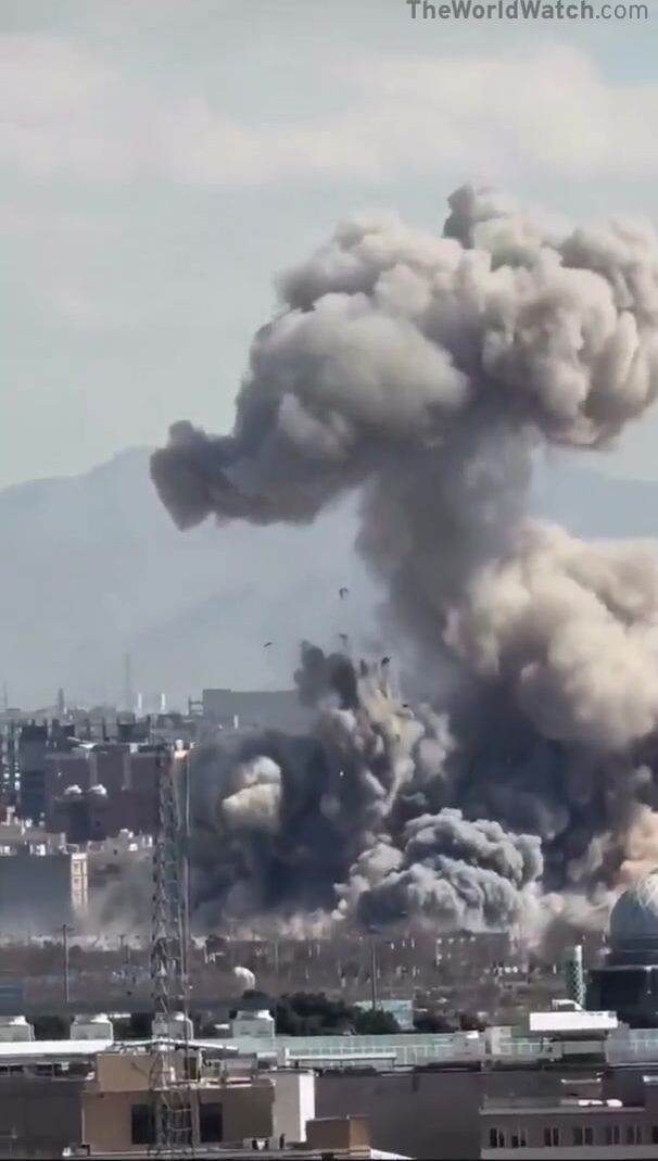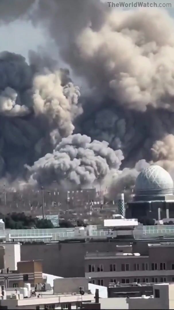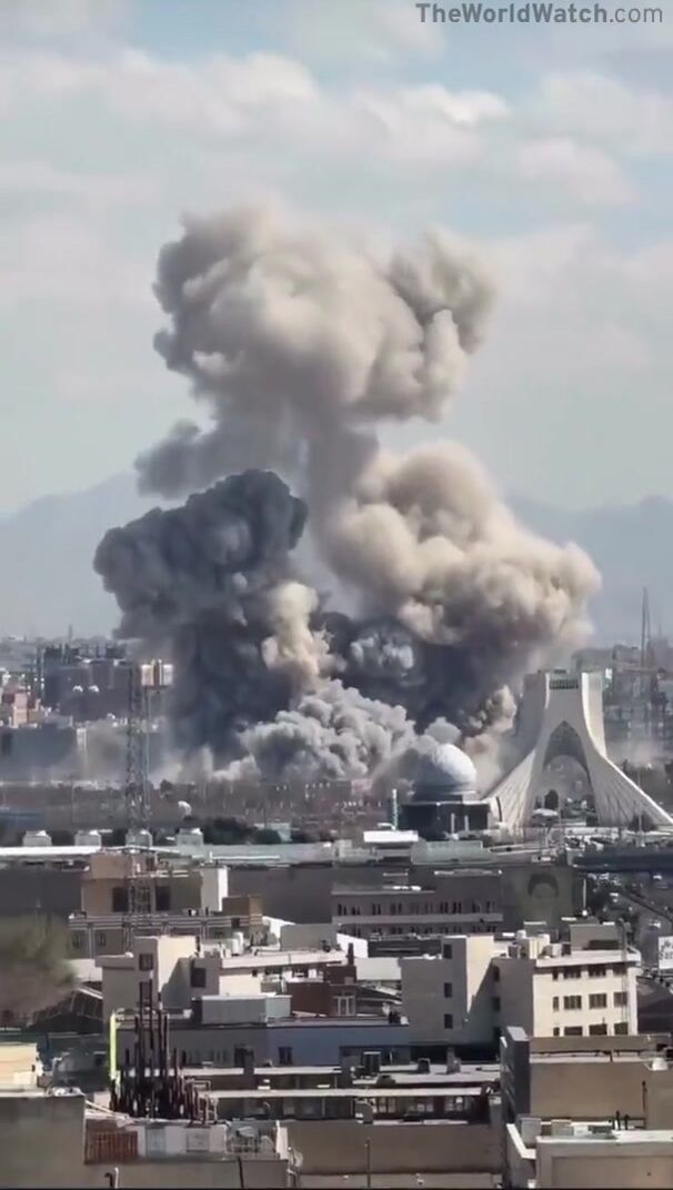 Insane footage captures airstrikes landing dangerously close to the Shahyad Tower in Tehran