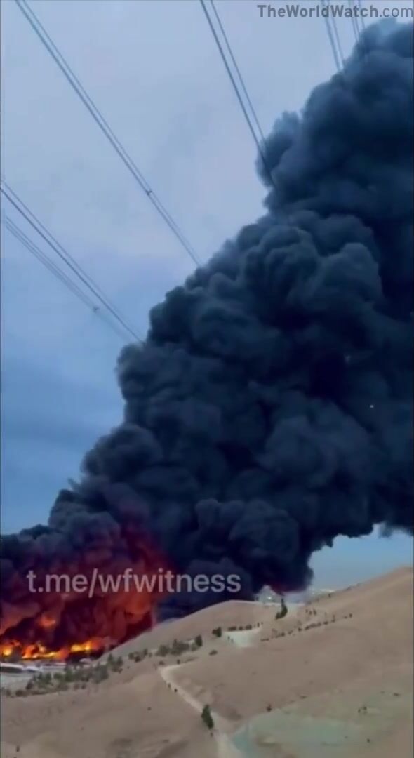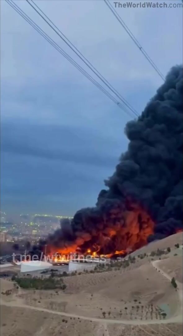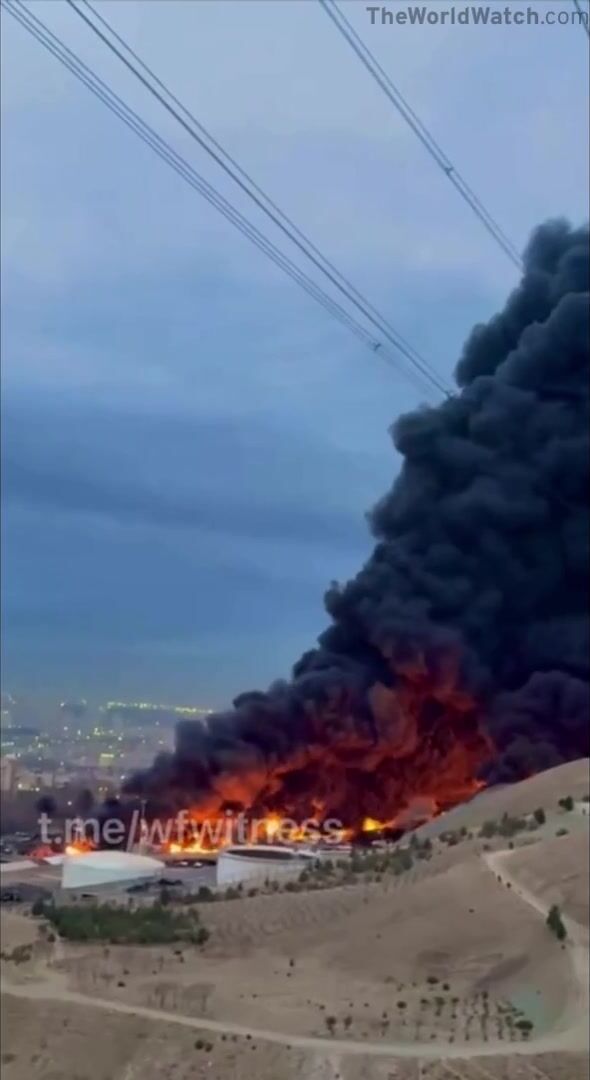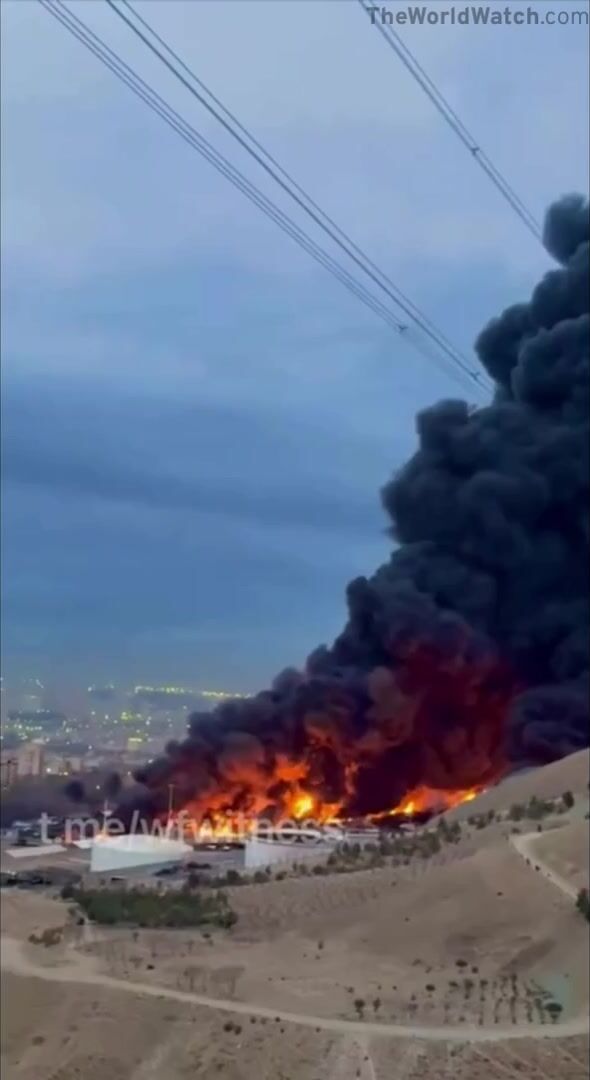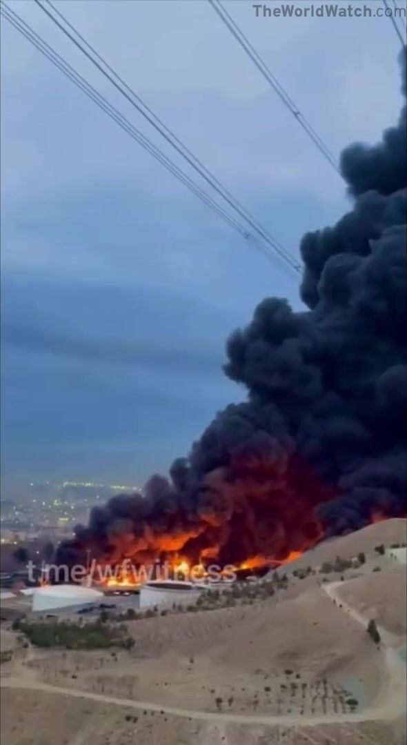 An oil facility in Tehran continues to burn after being hit overnight causing Oil rain (Watch until End)