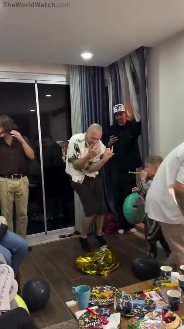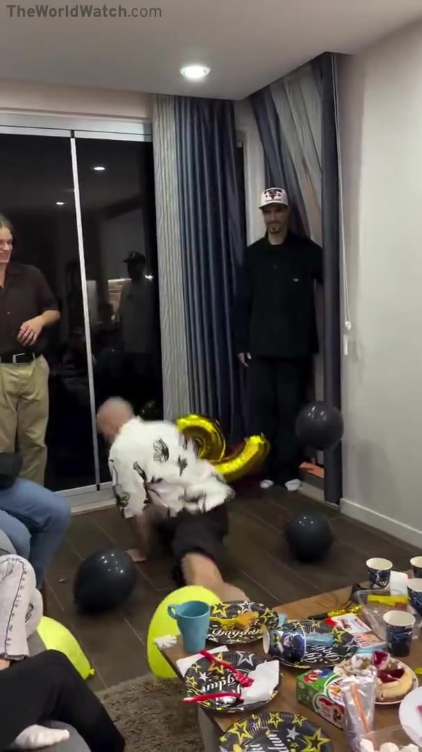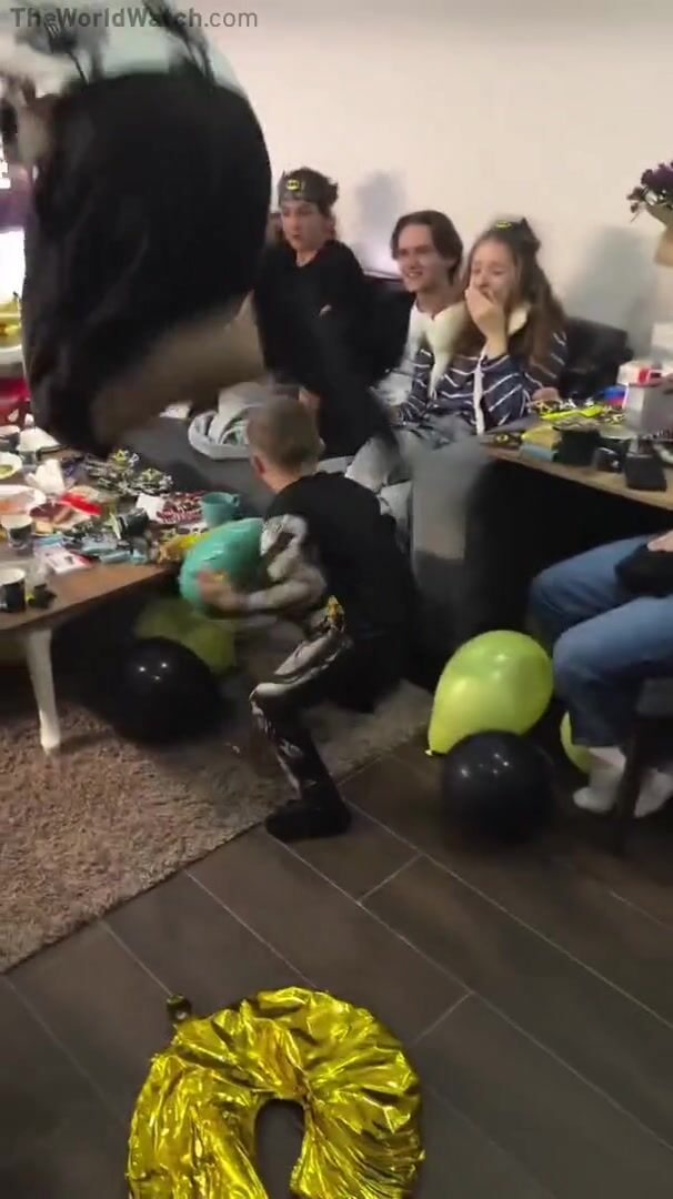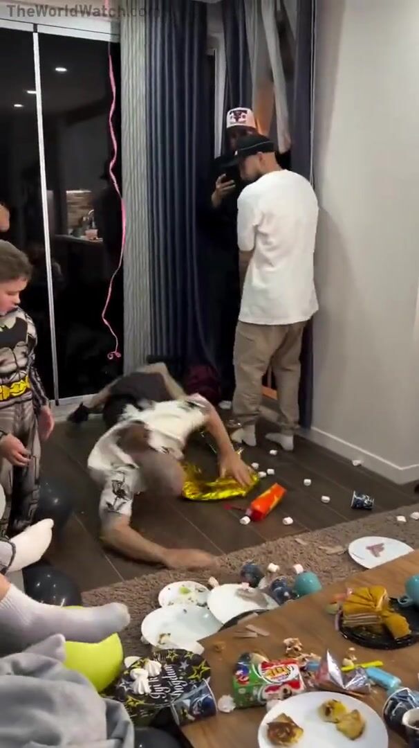 The worst part is that he thinks he's cool... he almost jumps on the child... they should have opened the balcony door... he could have danced there.