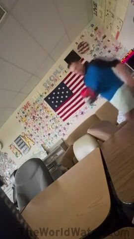 Poor teach. Probably only doing that cos of minimal time till next class, maybe not wanting to let his students down. Yet one of those little bastards chose to secrete a camera for "content". If i was head of that school? OK i'd have a small word with teach, but then I would immediately ban all mobile phones in that school.