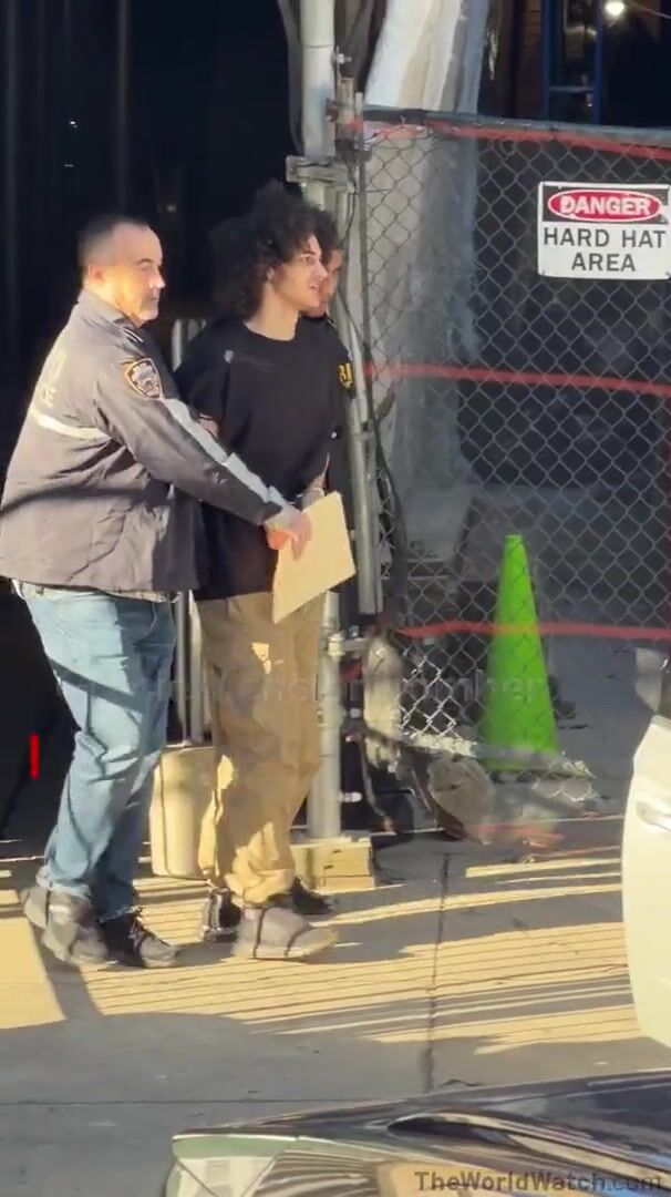 The 18-year-old was seen holding up his right index finger and grinning at the press while being led by a cop and an FBI agent.