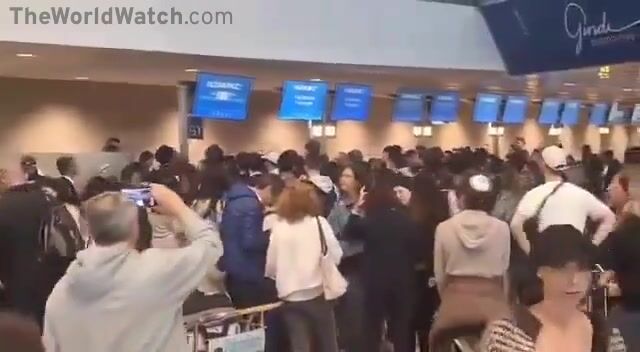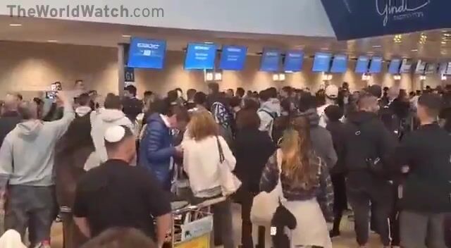 Chaos at Ben Gurion Airport in Israel as people are trying to flee - N12 Passengers got angry, check-in counters closed, and clashes broke out with police.