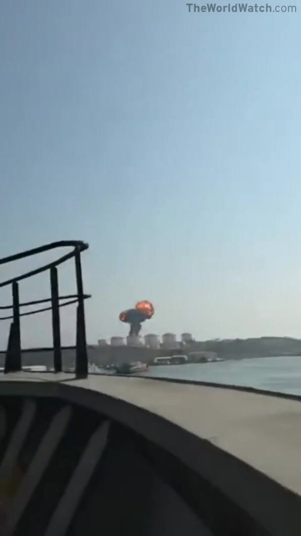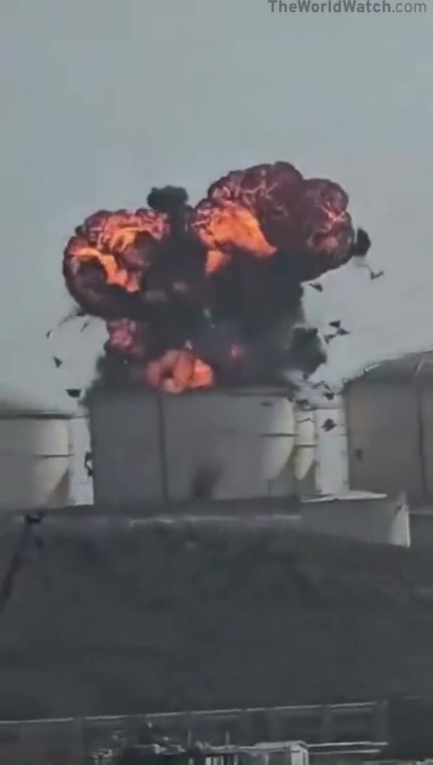 Video captures the moment an Iranian Shahed-136 suicide drone hits an oil storage facility in Oman.