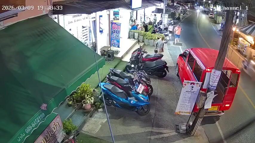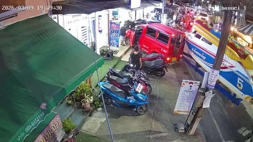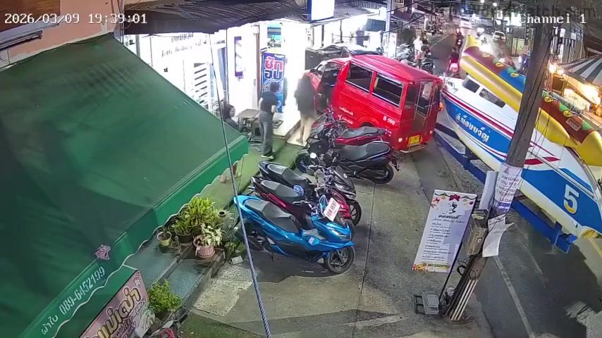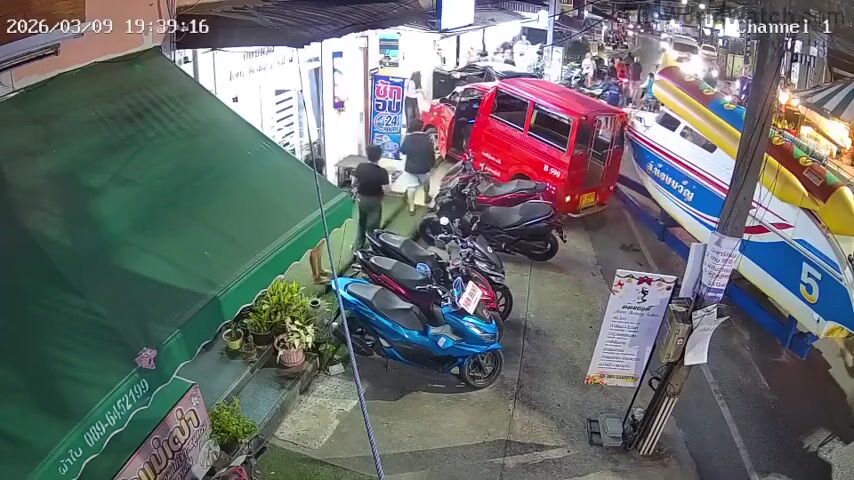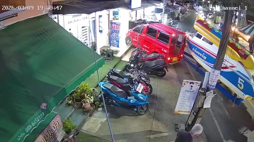 A pickup truck with a boat on a trailer rammed a massage parlor in Phuket.