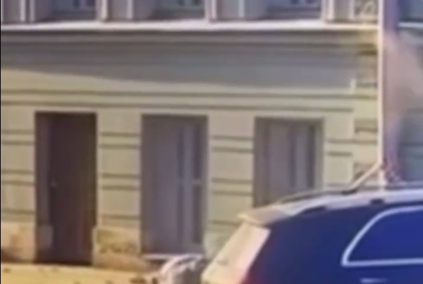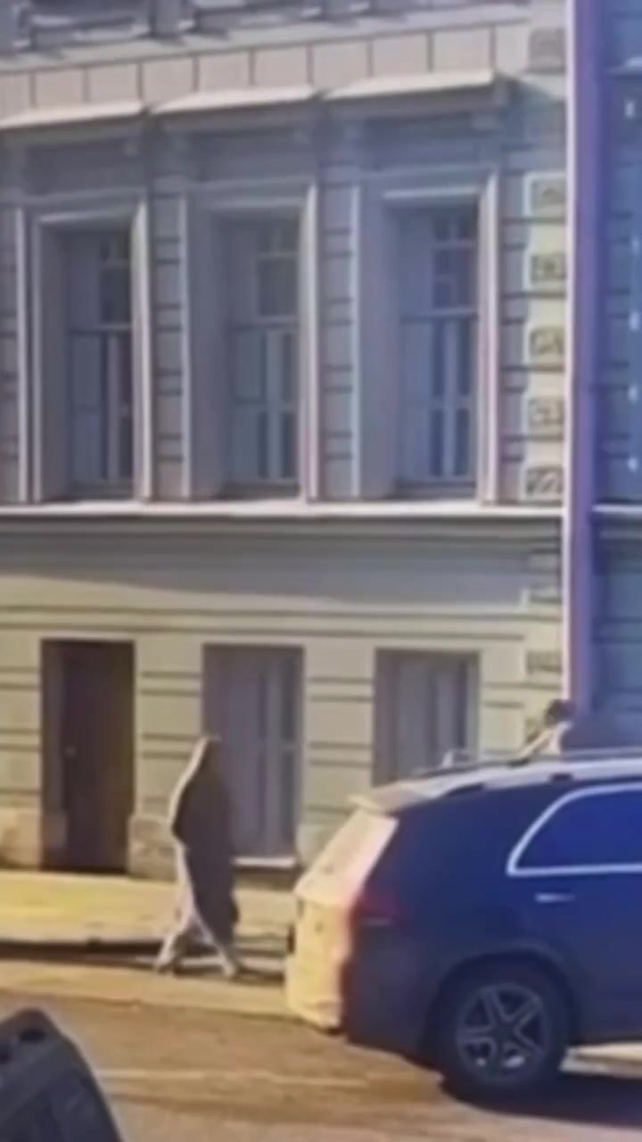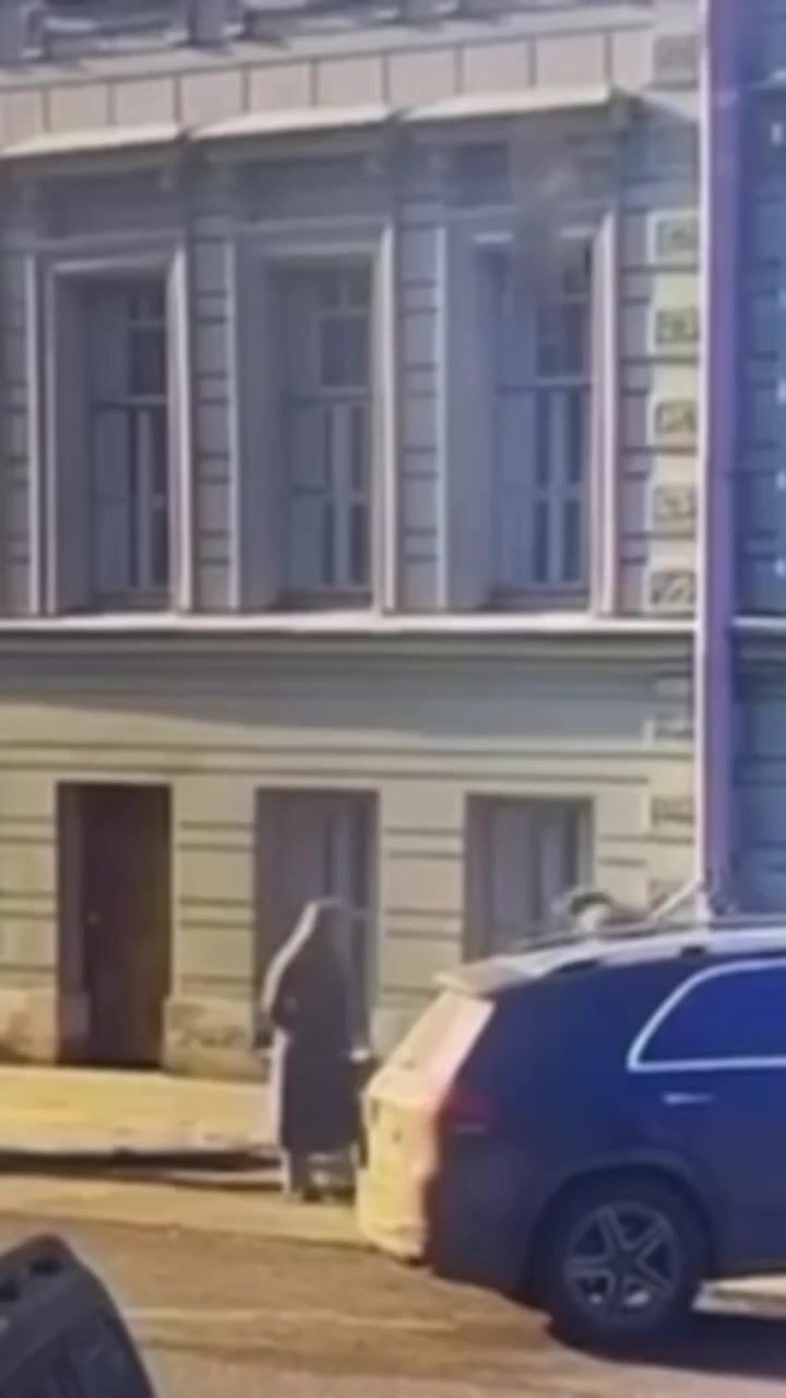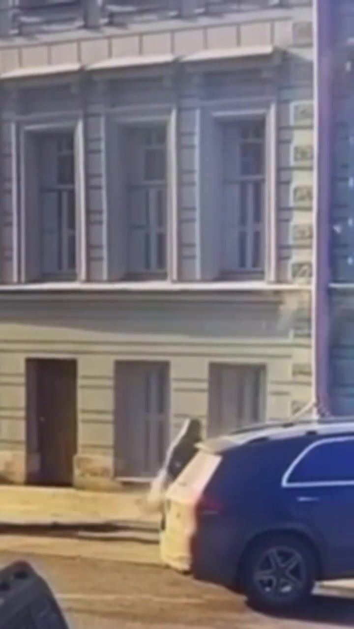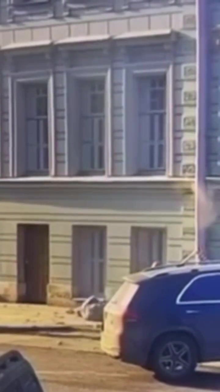 Footage has emerged of stucco collapsing on Bolshaya Morskaya Street, hitting the husband of the director