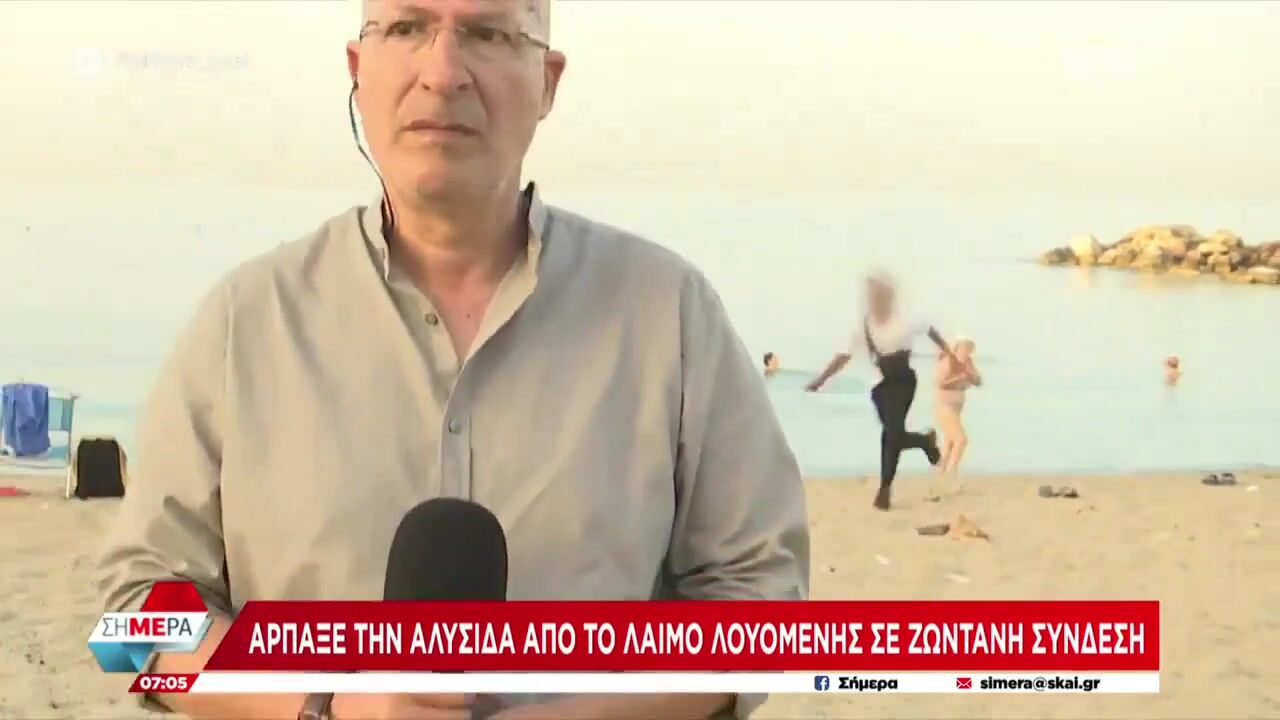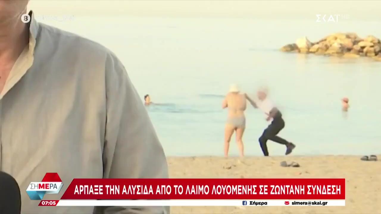 Fake asylum seeker just ripped off an old lady's cross necklace on live TV in Greece.
