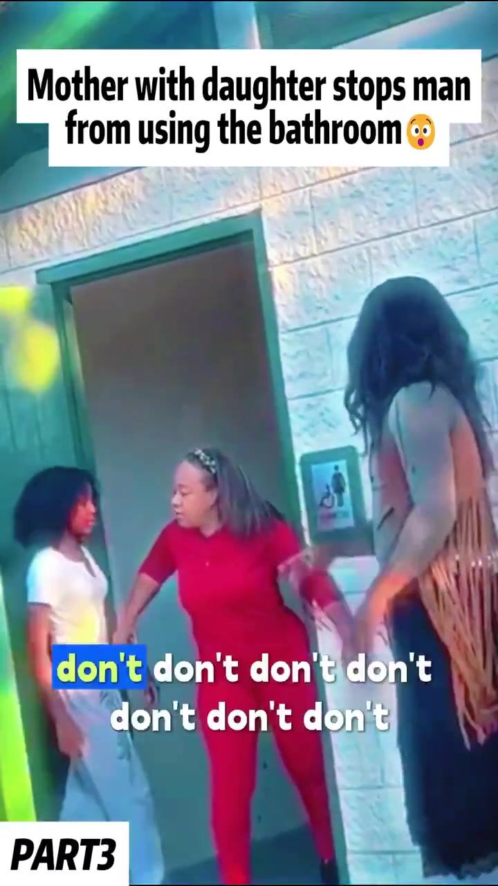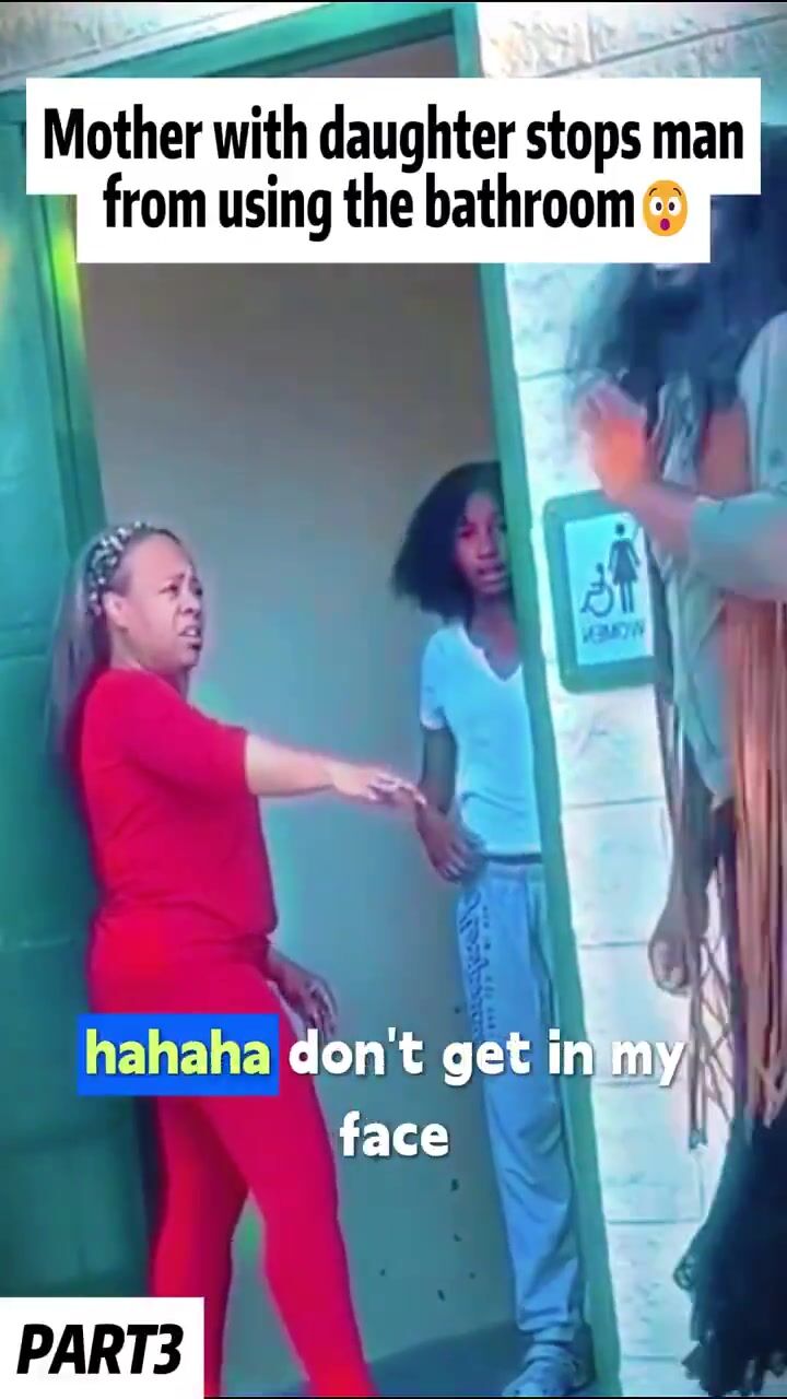 He wants to talk to her daughter. That effeminate man thinks this bathroom is a kindergarten classroom full of young children, or what?