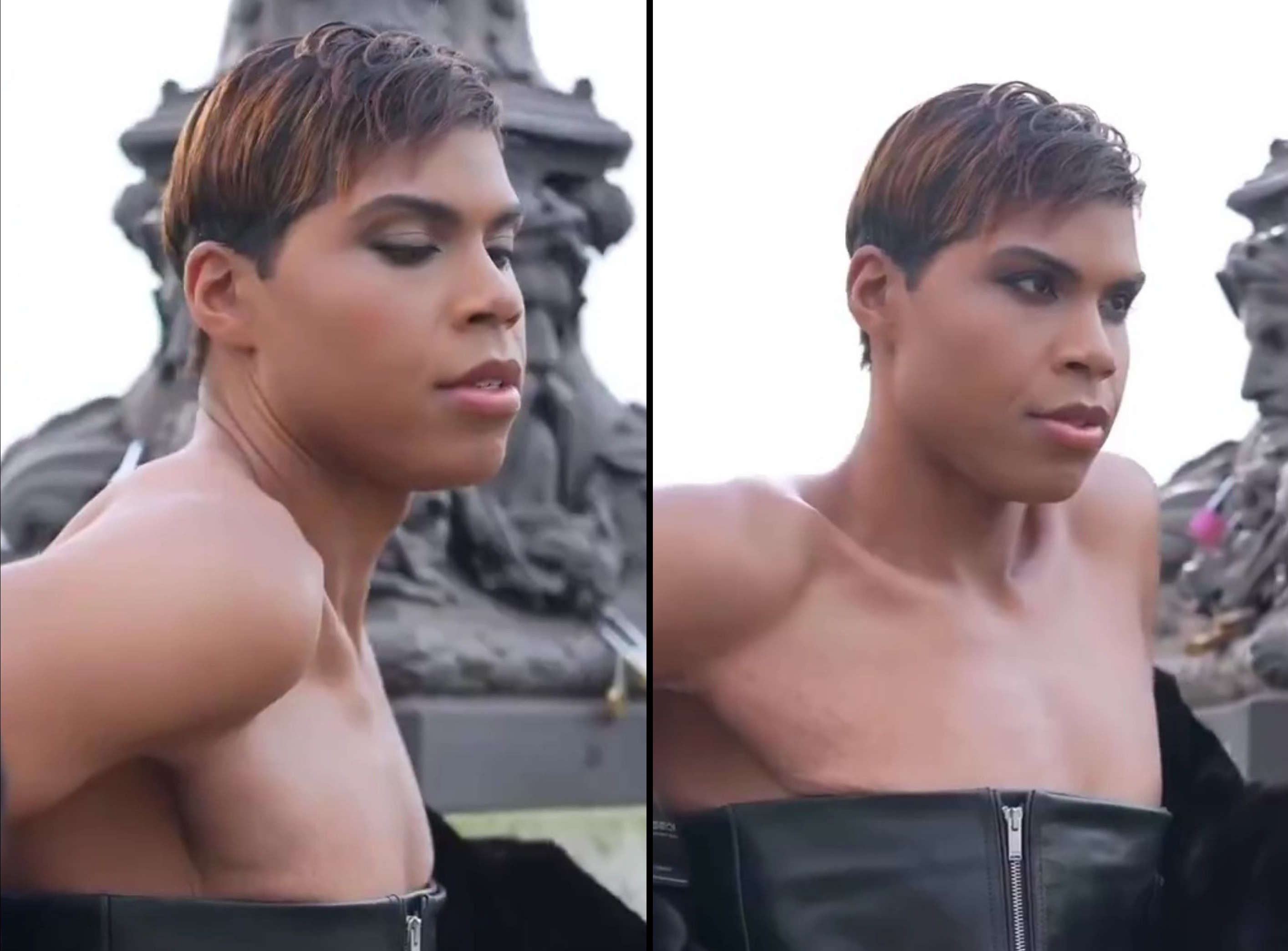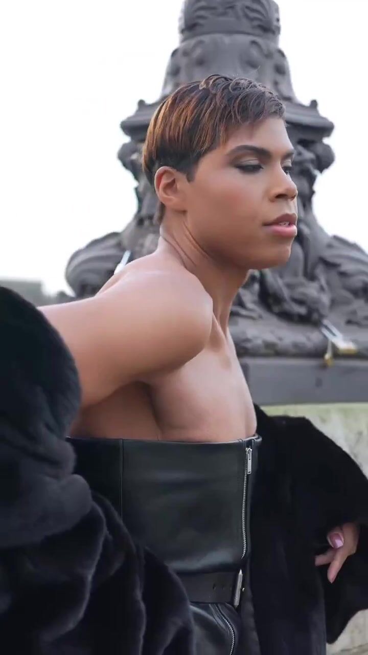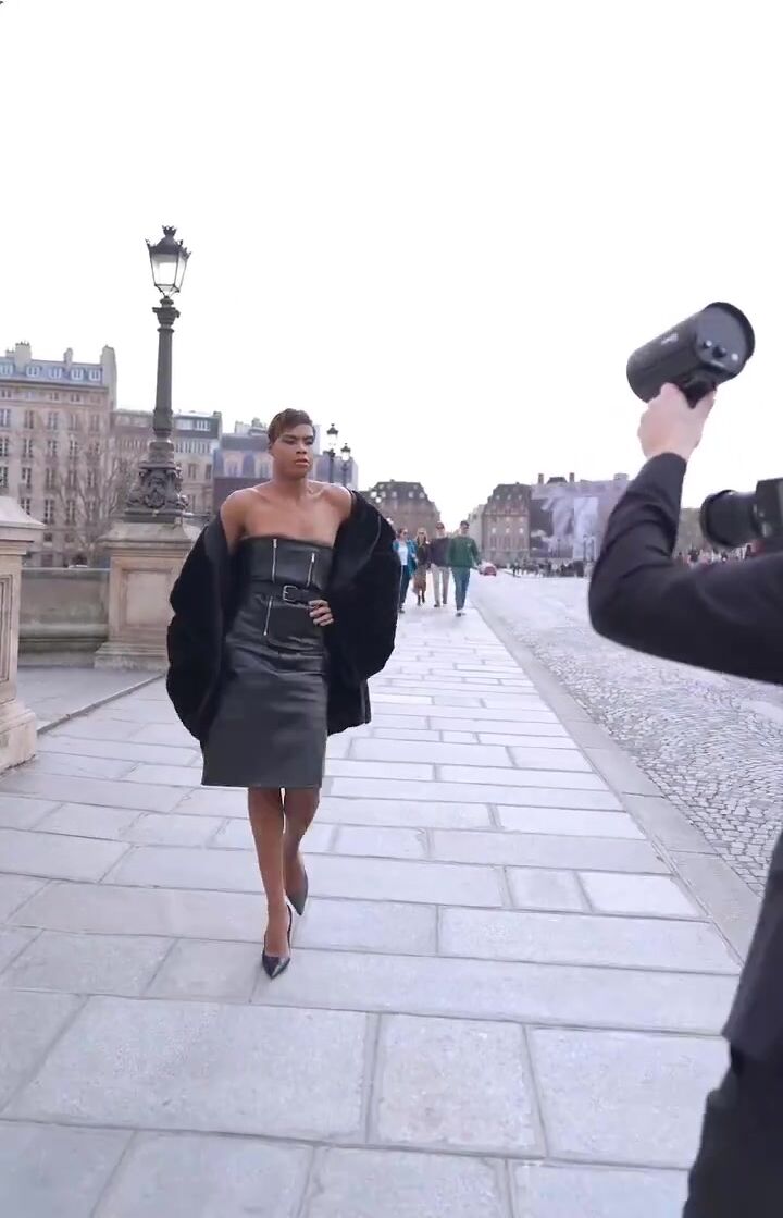 Magic Johnson’s SON models women’s leather dress and heels in Paris.