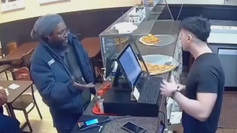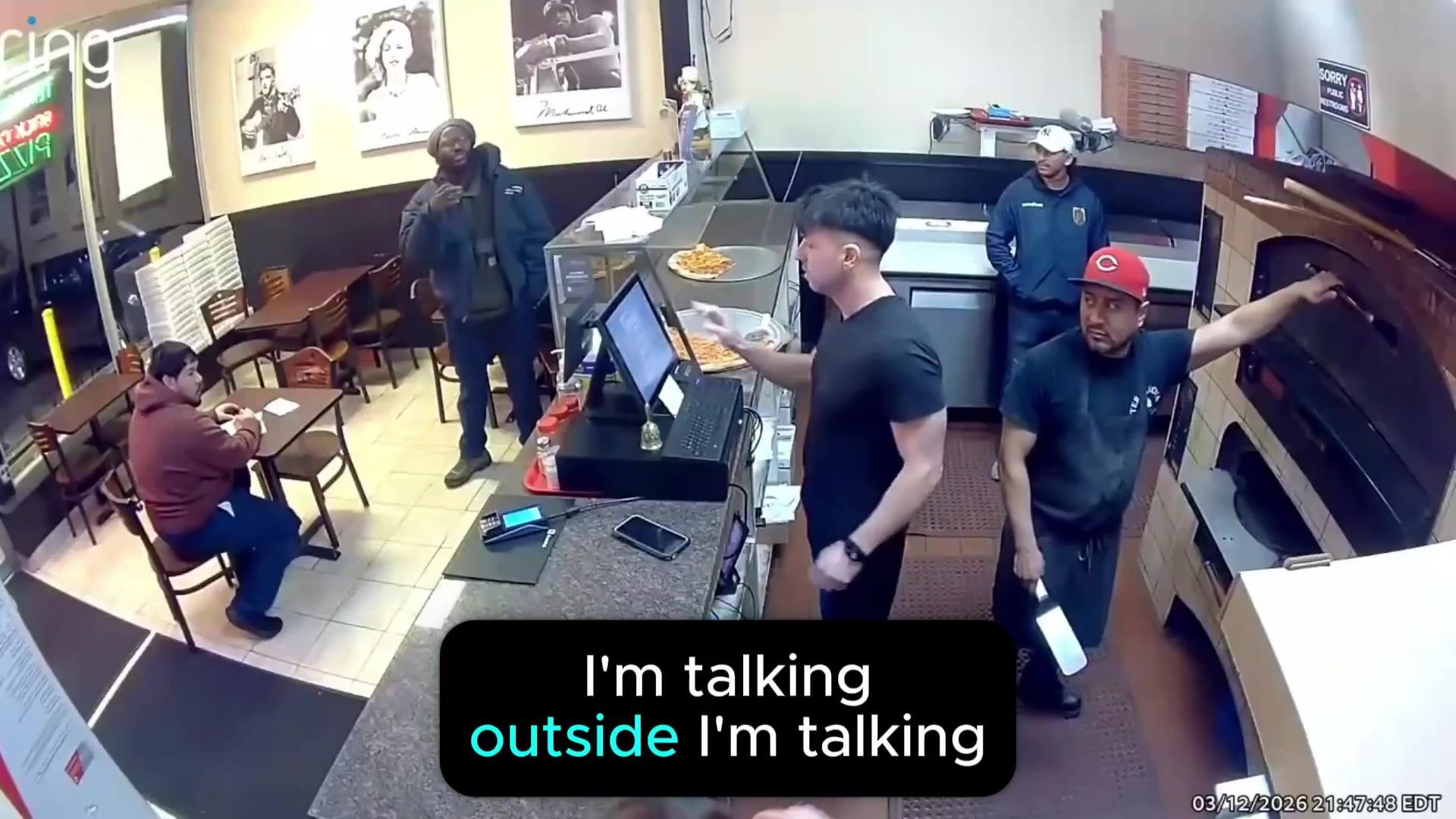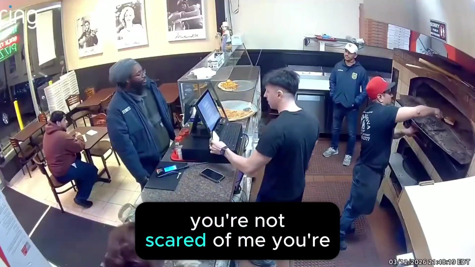 Belligerent man threatening pizza joint employees with violence