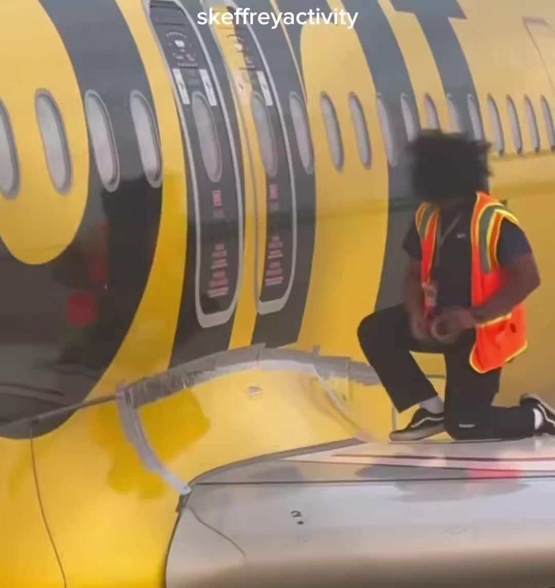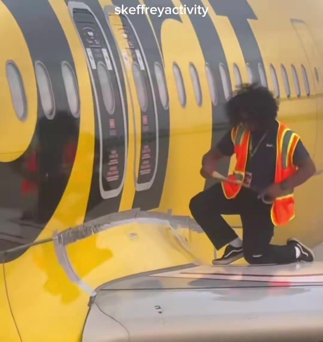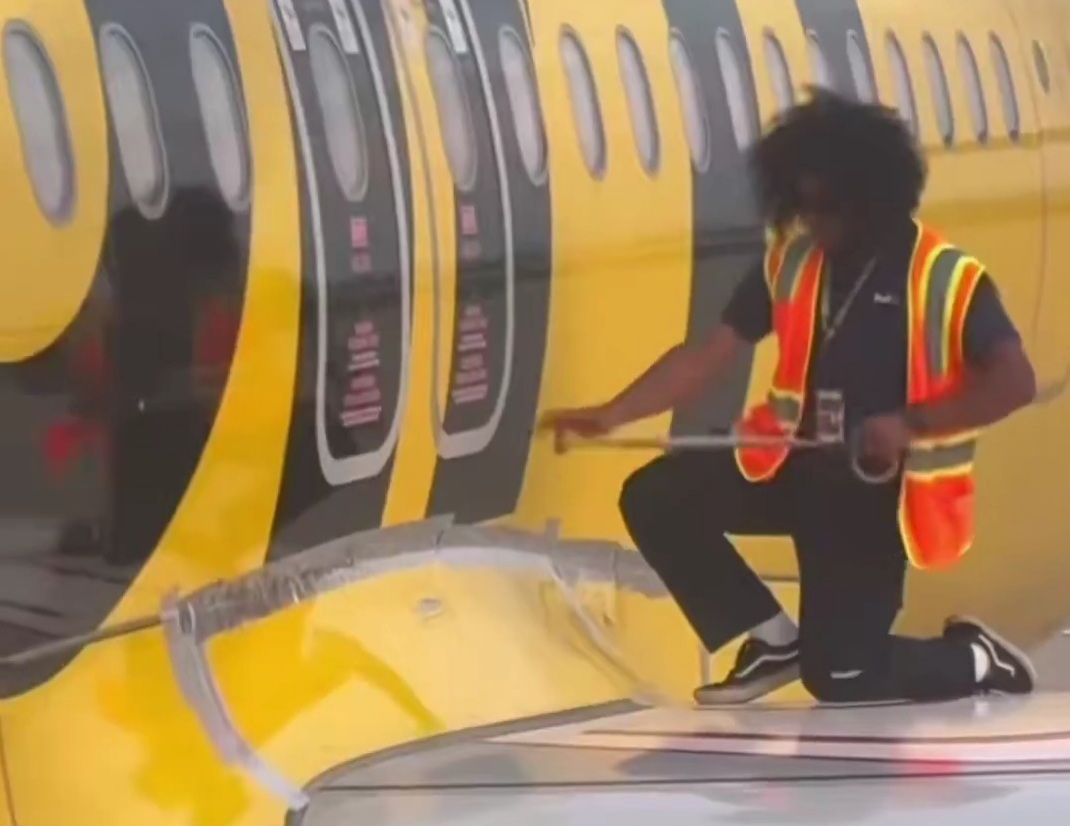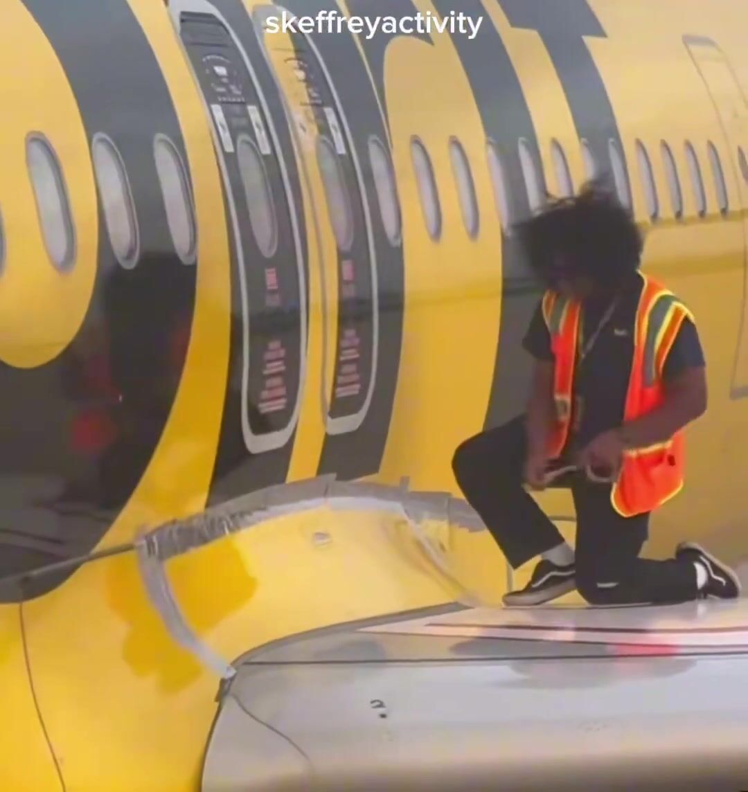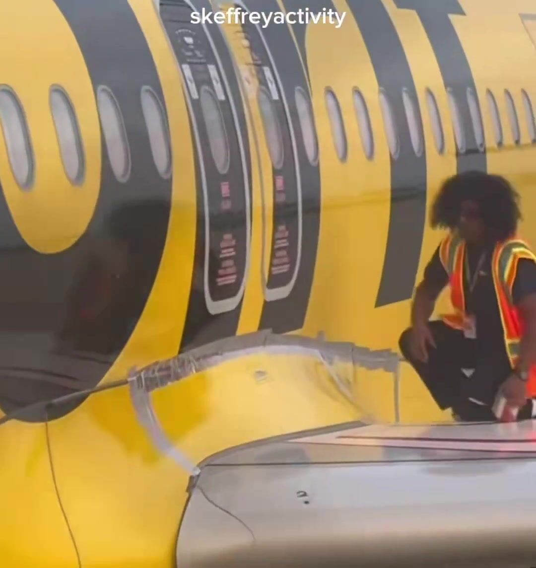 A passenger on Spirit Airlines catches the company duct taping their plane together