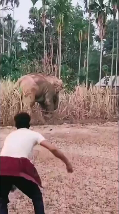 That was some pretty good hang time the elephant got on those tosses, without using its trunk.