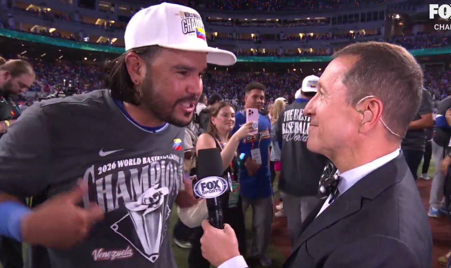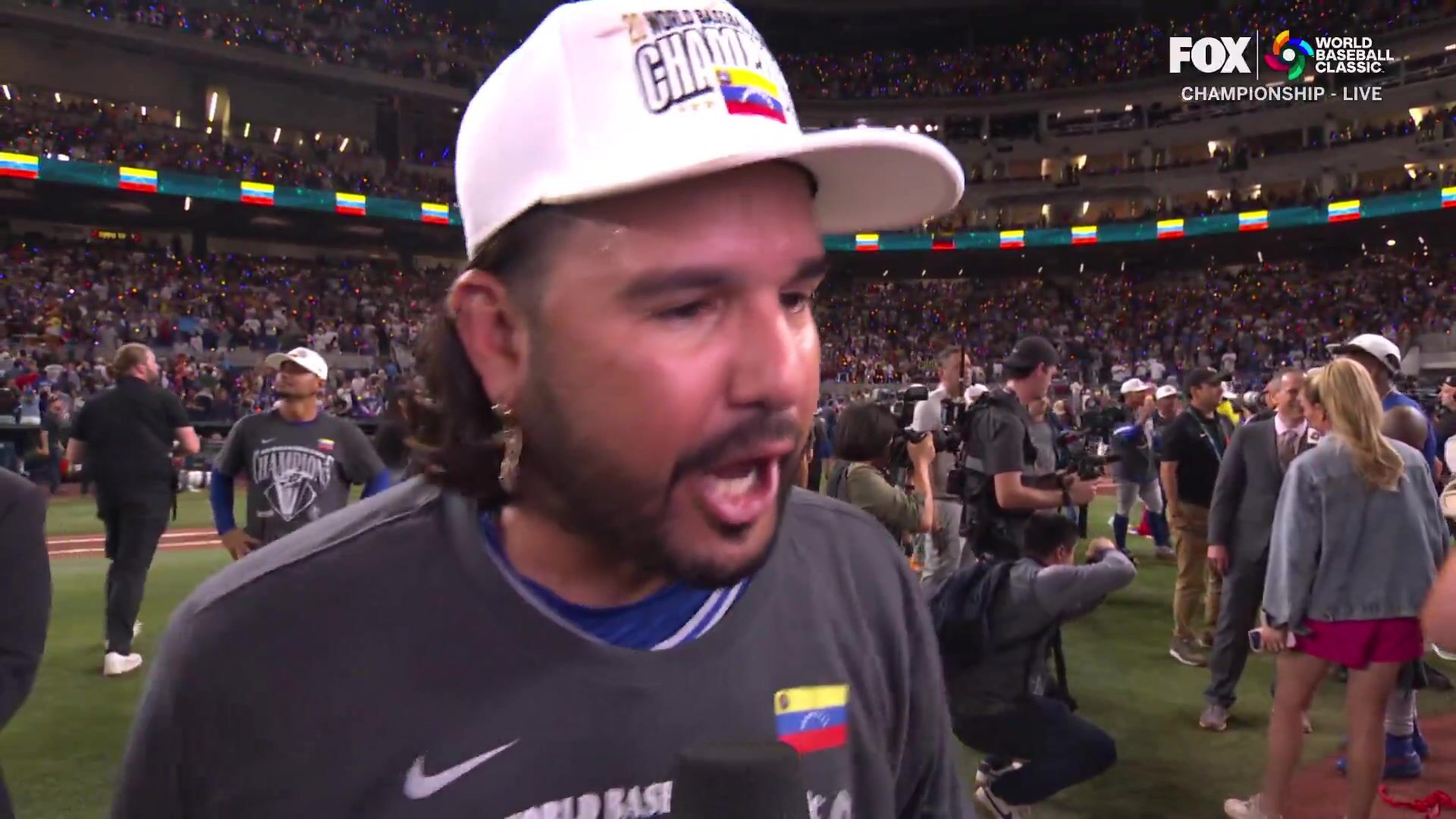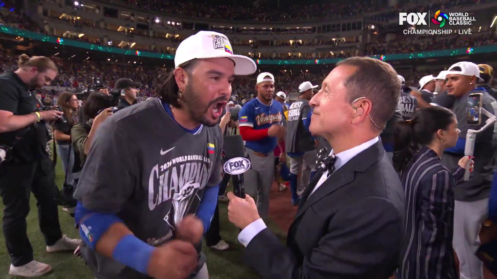 Venezuela star Eugenio Suarez after they defeat USA in the World Baseball Classic