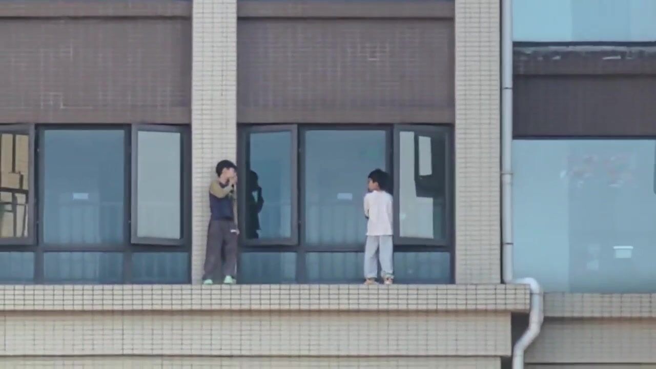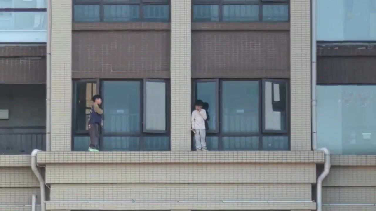 Heart-stopping video shows kids walking outside railing on highrise balcony