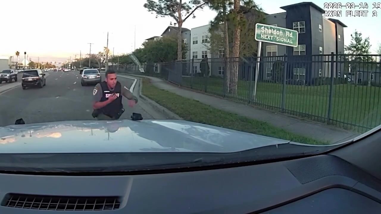 A deputy deployed a Grappler device, which attached to the vehicle’s rear tire and began slowing it down. HCSO said Wilson continued trying to flee, driving over a grass median near in an apparent attempt to turn around.