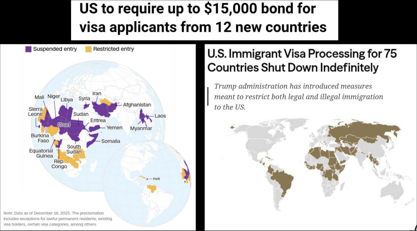 50 countries are under bond restriction, 75 visa restricted, 39 travel ban