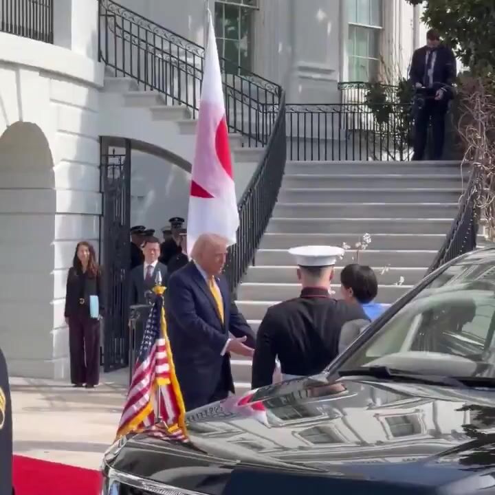 Incredible moment as President Trump welcomes Japan's right-wing Prime Minister