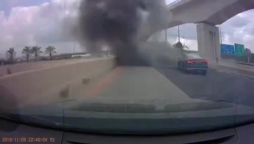 The warhead of an Iranian missile fell in front of a moving vehicle in Israel, the vehicle narrowly escaped.