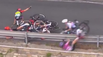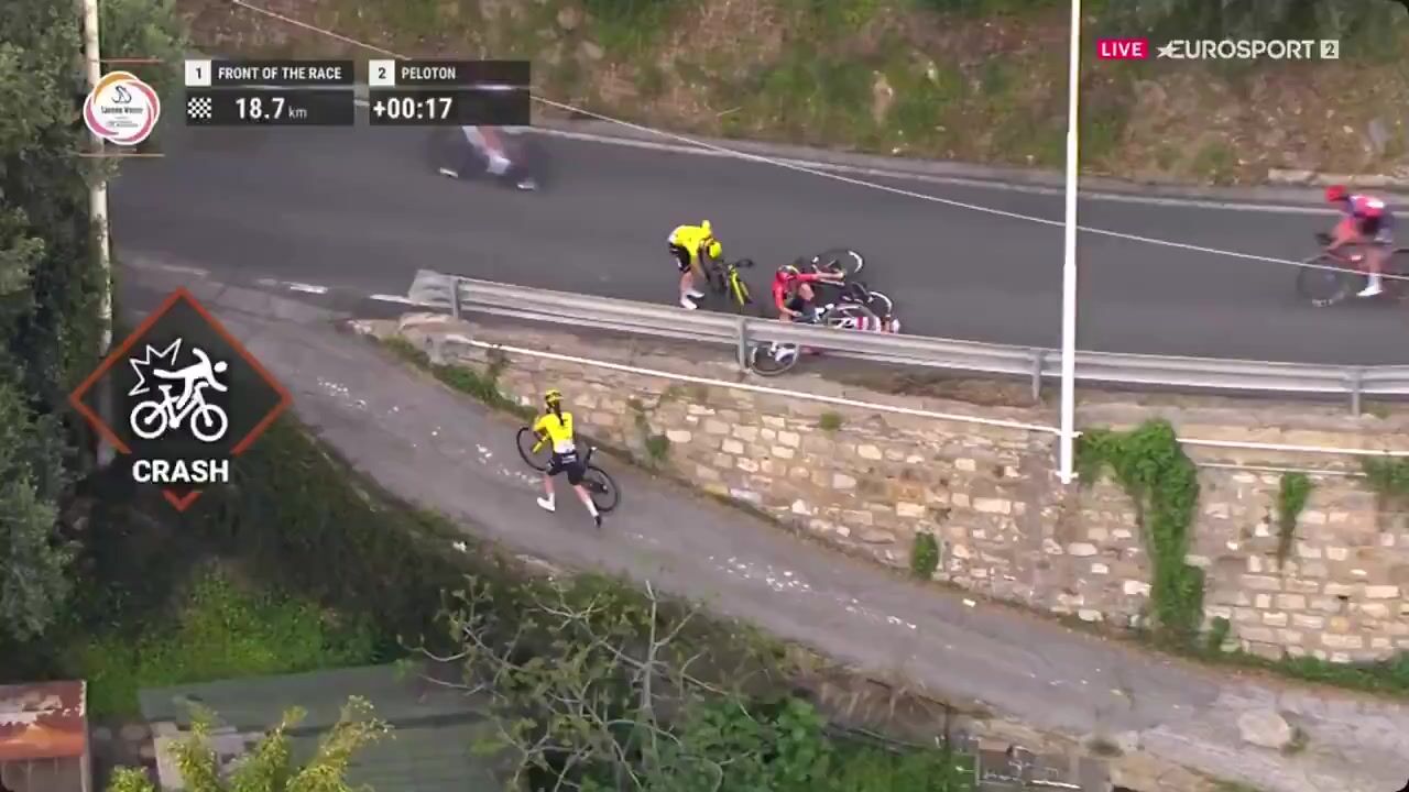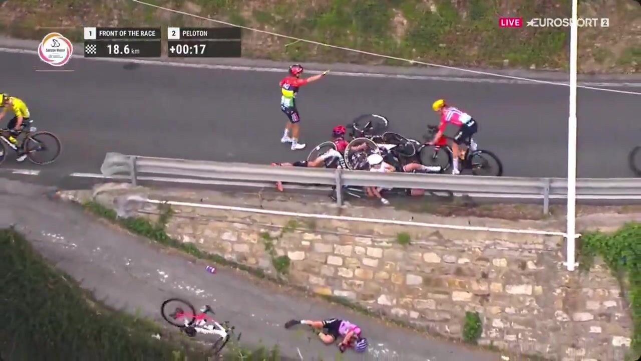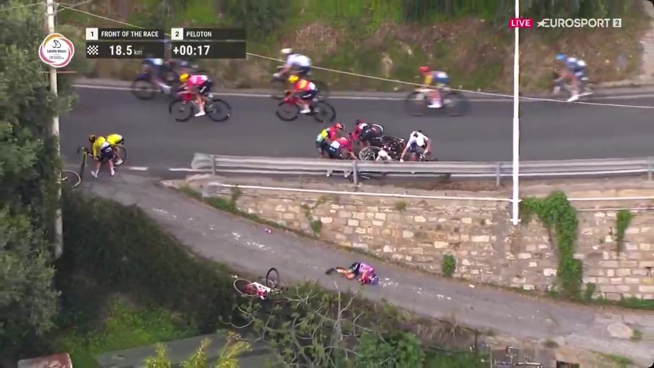 The rider who flew over the edge is Debora Silvestri. Fuck that bitch. She belongs in two places, kitchen and bedroom!