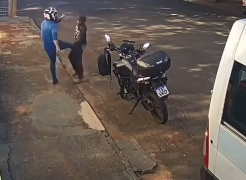Motorcycle delivery driver reacts to robbery and chases criminal; VIDEO
