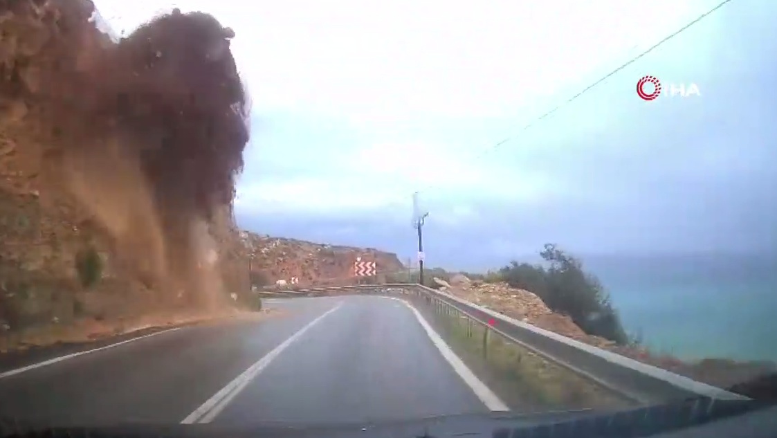 The landslide tragedy on the Mersin-Antalya highway was captured moment by moment on a car camera. Soil and rock fragments detached from the mountain swallowed the car, but the driver escaped with minor injuries.