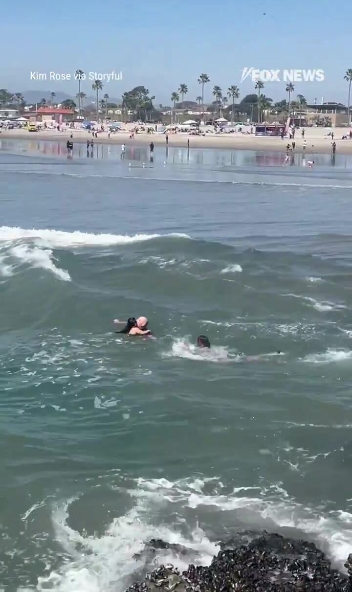 RIP CURRENT RESCUE: A California swim coach is being hailed a hero after diving into dangerous waters to save a father and daughter caught in powerful rip currents.