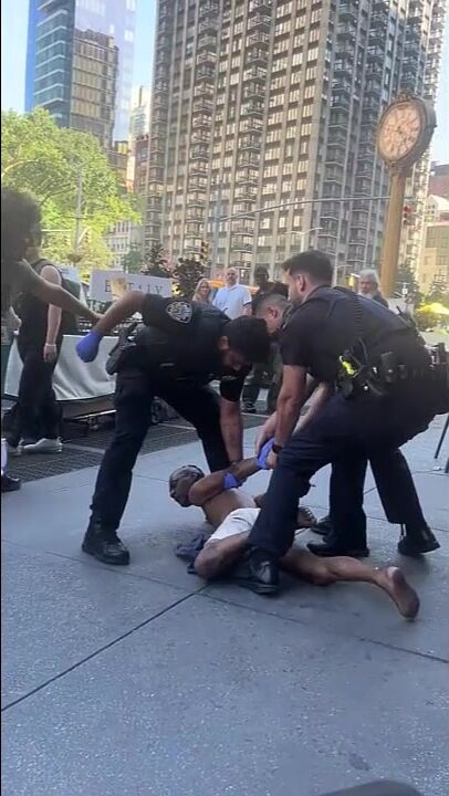 In New York City, the man was trying to bite the officer’s leg