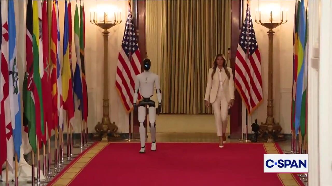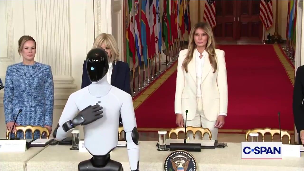 CLOWN WORLD - Robot walks the halls with Melania Trump for tech summit