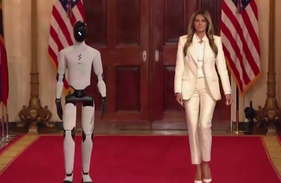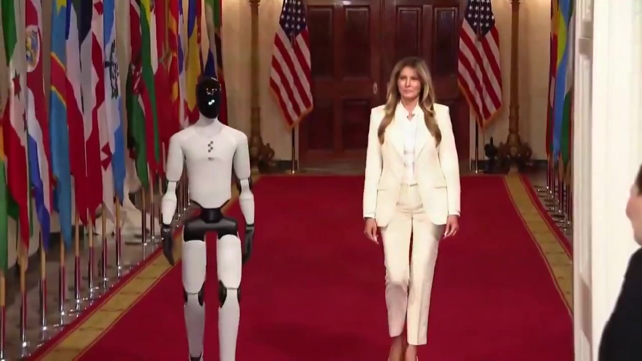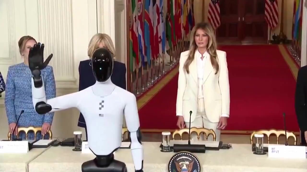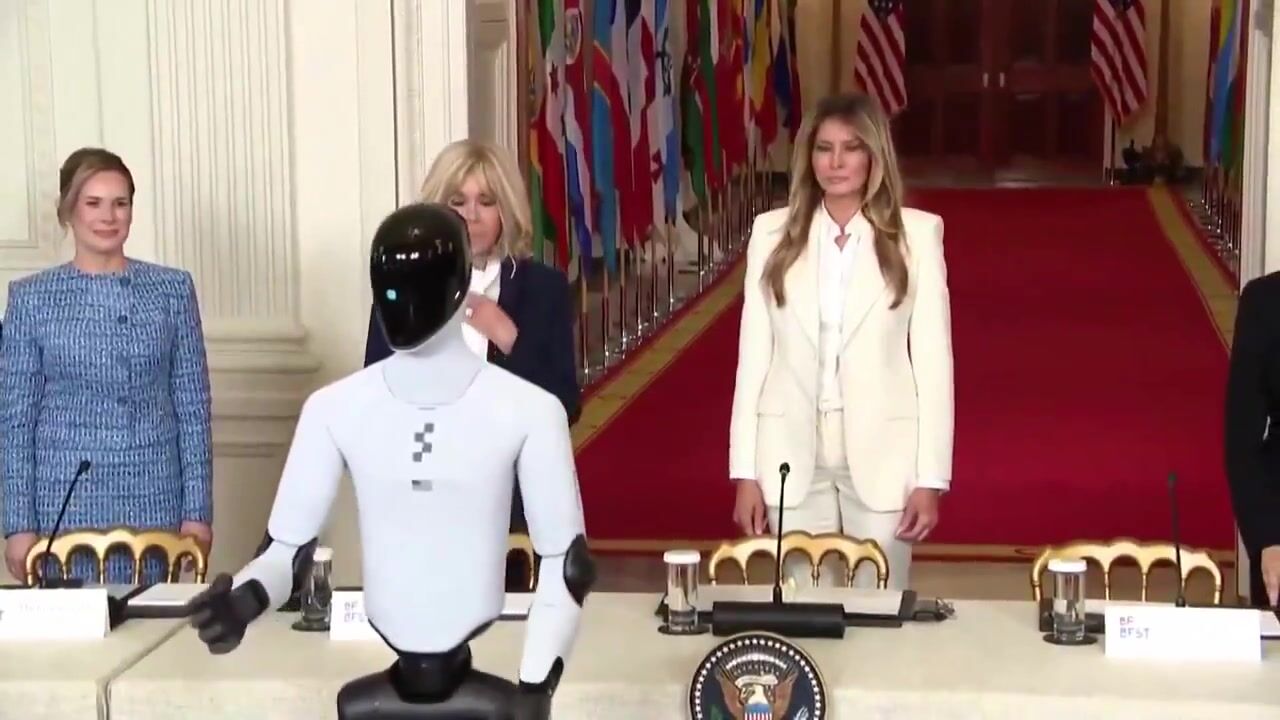 "AI-powered humanoid robot accompanies first lady Melania Trump to a White House summit on empowering children with educational technology."