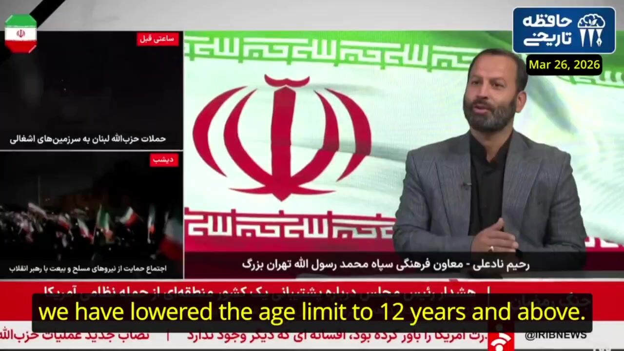 IRGC announces lowering the minimum age for "war-related support roles" to 12 years old kids.